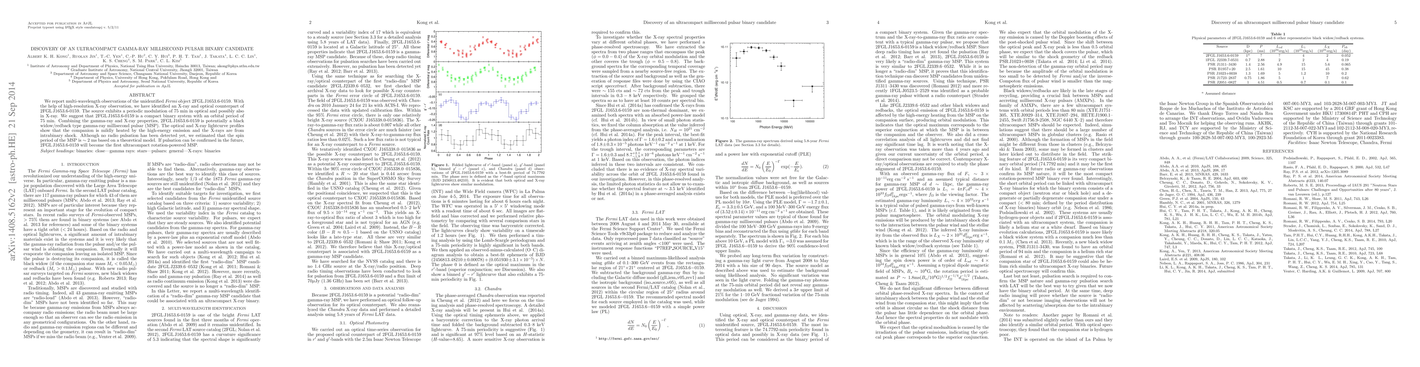 This paper identifies an ultracompact binary system, 2FGL J1653.6-0159, with a potential gamma-ray millisecond pulsar and an orbital period of 75 minutes. The source shows periodic modulation in optical and possibly X-ray emissions, suggesting it could be a black widow/redback type pulsar, pending confirmation of radio pulsations.