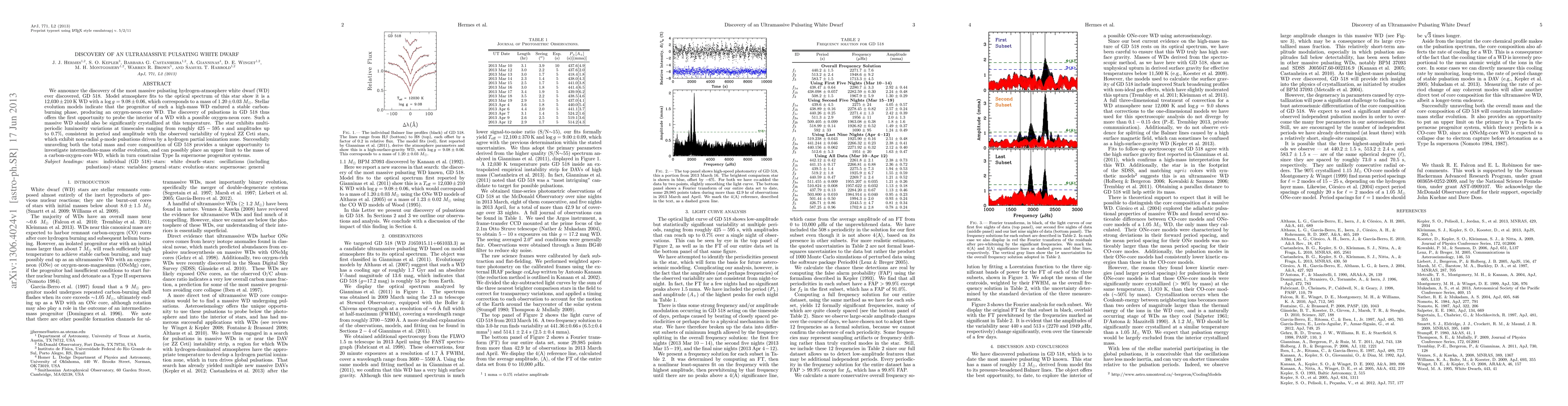 The discovery of the ultramassive pulsating white dwarf GD 518, with a mass of 1.20 +/- 0.03 Msun, reveals a hydrogen-atmosphere white dwarf with multi-periodic luminosity variations, offering insights into intermediate-mass stellar evolution and potentially constraining the upper mass limit of carbon-oxygen-core white dwarfs.