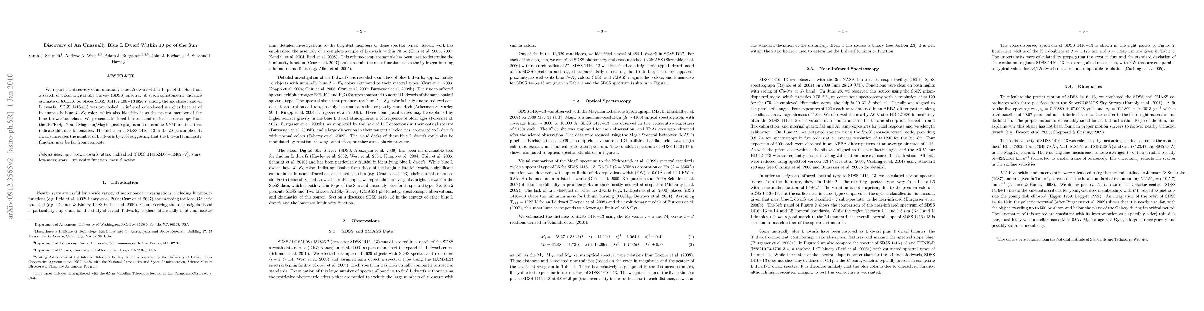 This paper reports the discovery of an unusually blue L5 dwarf, SDSS J141624.08+134826.7, located within 10 pc of the Sun, identified through Sloan Digital Sky Survey spectra. Its blue J-K_S color marks it as the nearest member of the blue L dwarf subclass, suggesting the L dwarf luminosity function may be incomplete.