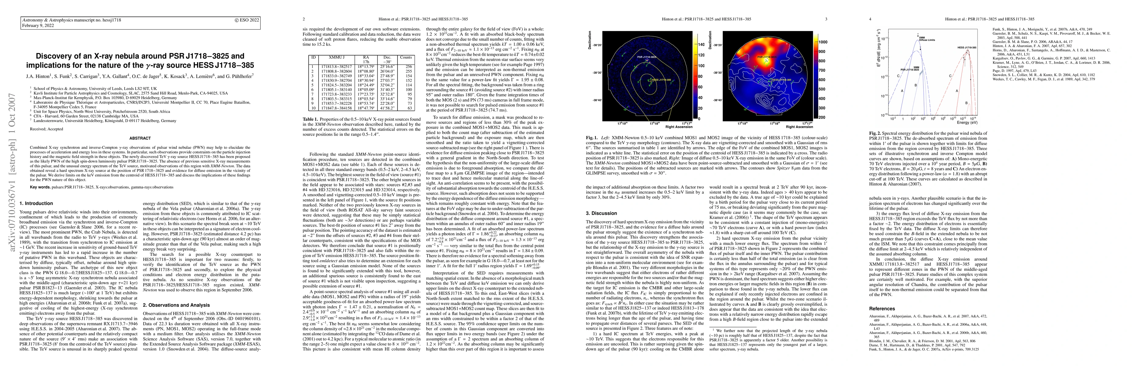 The paper reports the discovery of an X-ray nebula around PSR J1718-3825 using XMM-Newton observations, providing evidence for diffuse X-ray emission near the pulsar. These findings suggest a possible pulsar wind nebula (PWN) nature for the TeV gamma-ray source HESS J1718-385, offering insights into the pulsar's particle injection history and magnetic field strength.