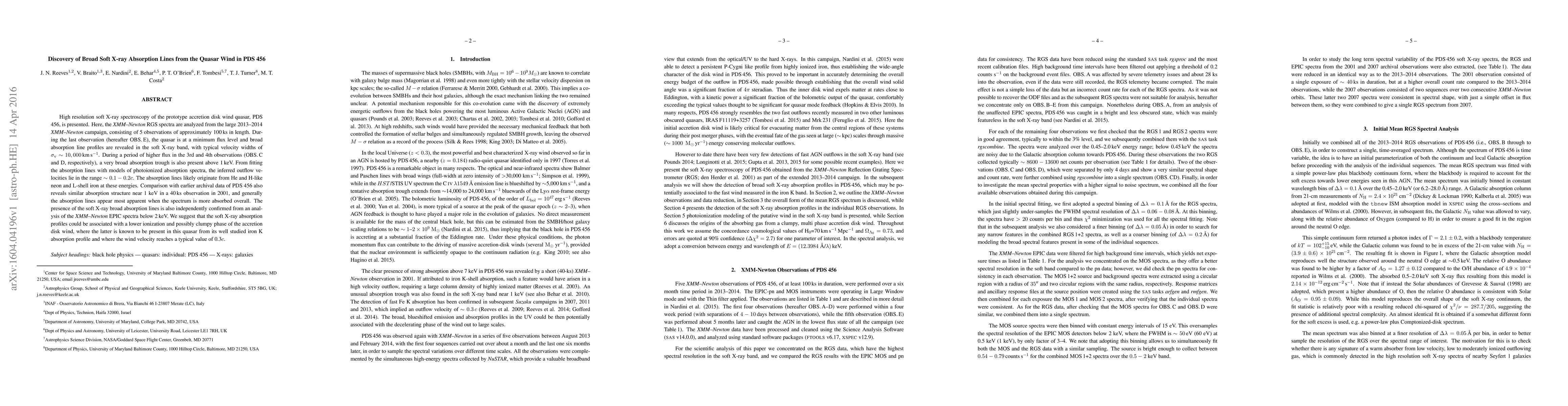 This paper reports the discovery of broad soft X-ray absorption lines in the quasar wind of PDS 456, observed during a low flux state with XMM-Newton. The absorption lines, with velocities up to 0.1-0.2c, likely originate from He and H-like neon and L-shell iron, suggesting a lower ionization and possibly clumpy phase of the accretion disk wind.