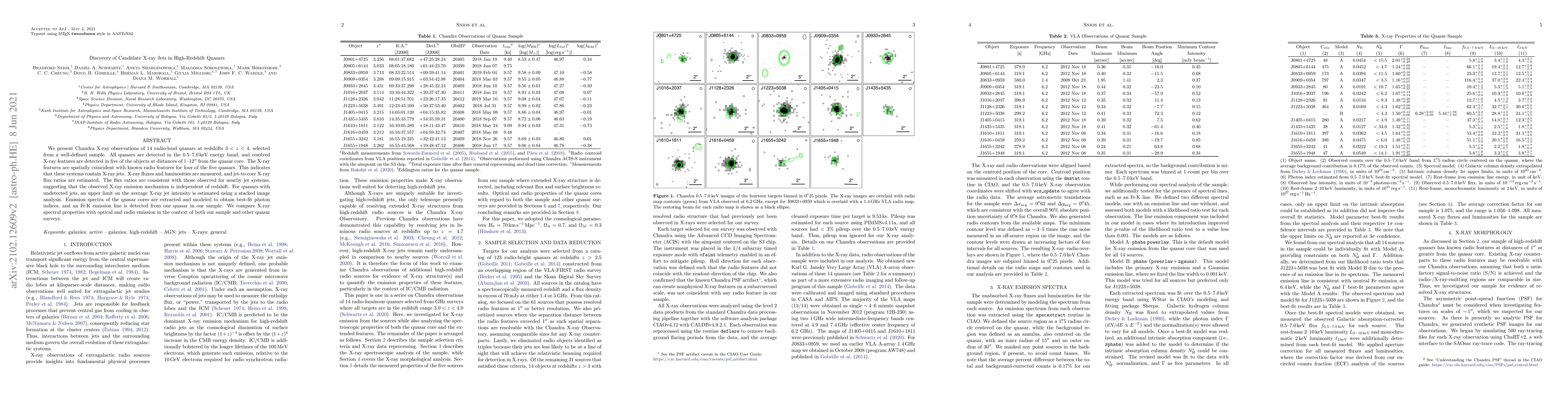 This study uses Chandra X-ray observations to identify candidate X-ray jets in 14 high-redshift quasars, finding resolved X-ray features in five objects that coincide with radio features, suggesting the presence of X-ray jets. The X-ray emission mechanism appears consistent across redshifts, and spectral analysis reveals an Fe K emission line in one quasar.
