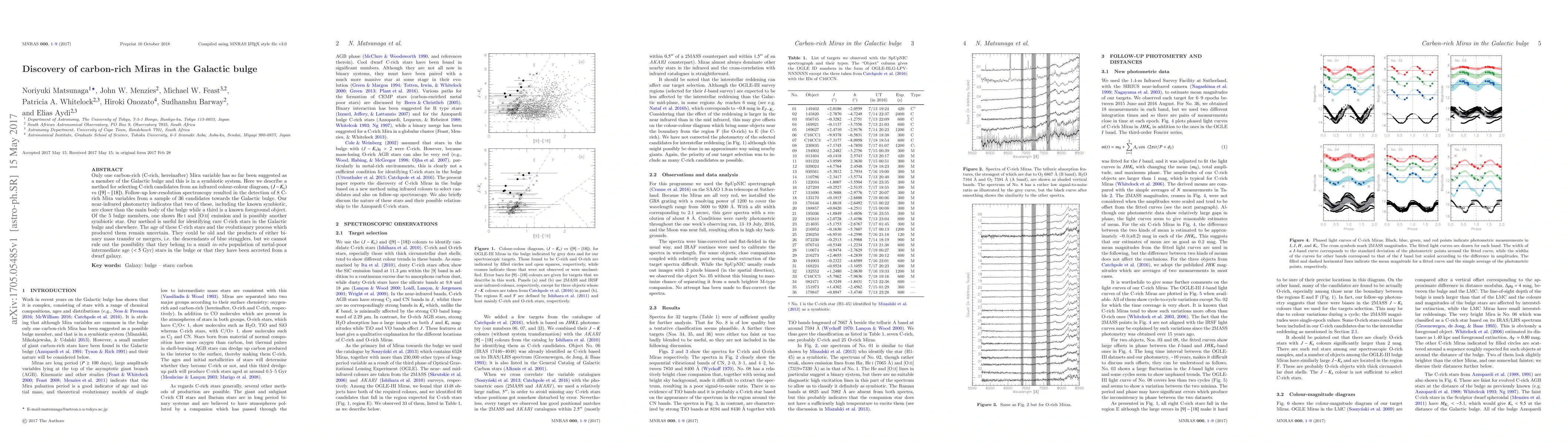 This paper presents a method for identifying carbon-rich Mira variables in the Galactic bulge using infrared color-color diagrams and spectroscopy, resulting in the discovery of 8 such stars, including 5 confirmed bulge members. The evolutionary origins of these stars remain uncertain, potentially linked to binary mass transfer, mergers, or in-situ populations.