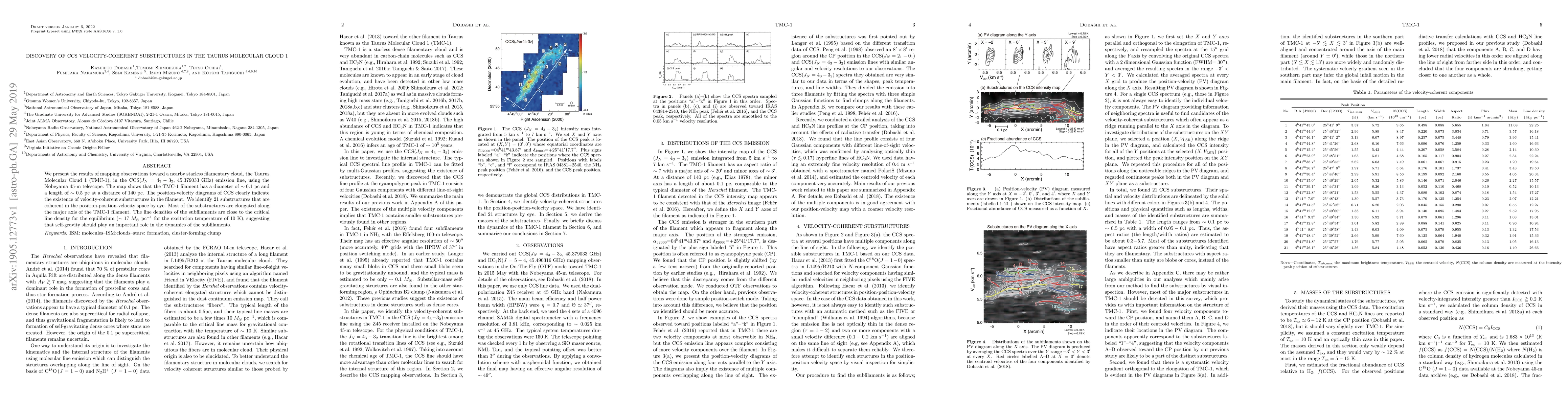 This study reveals the presence of 21 velocity-coherent substructures within the Taurus Molecular Cloud 1 using CCS emission mapping, suggesting that self-gravity likely influences the dynamics of these subfilaments. The findings highlight the filament's complexity and potential for star formation.
