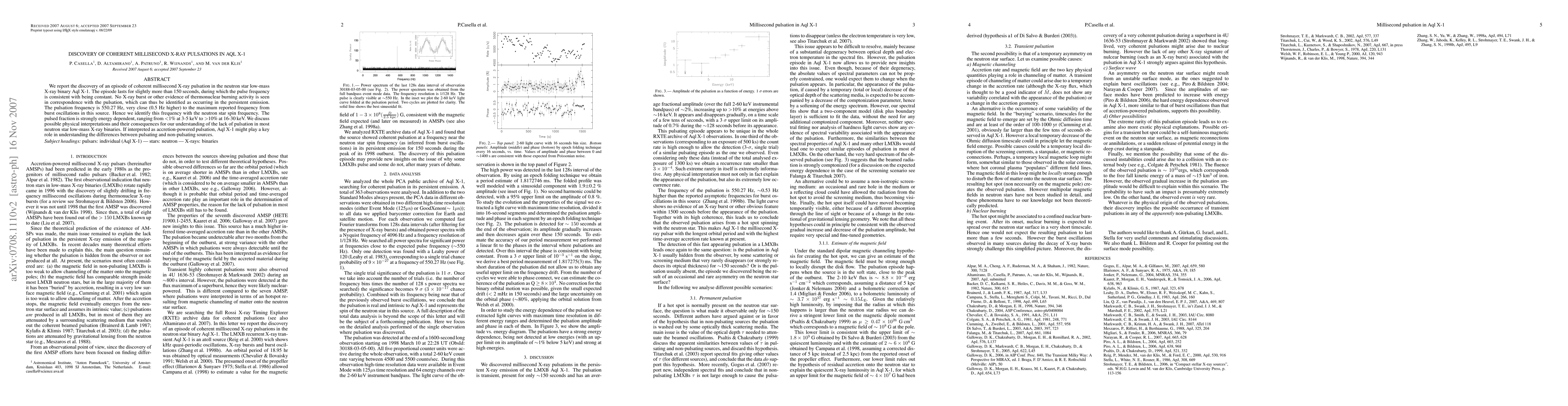 This paper reports the discovery of coherent millisecond X-ray pulsations in Aql X-1, identifying the pulse frequency as the neutron star spin frequency at 550.27 Hz. The findings suggest that Aql X-1 could be crucial for understanding why most neutron star low-mass X-ray binaries do not exhibit such pulsations.