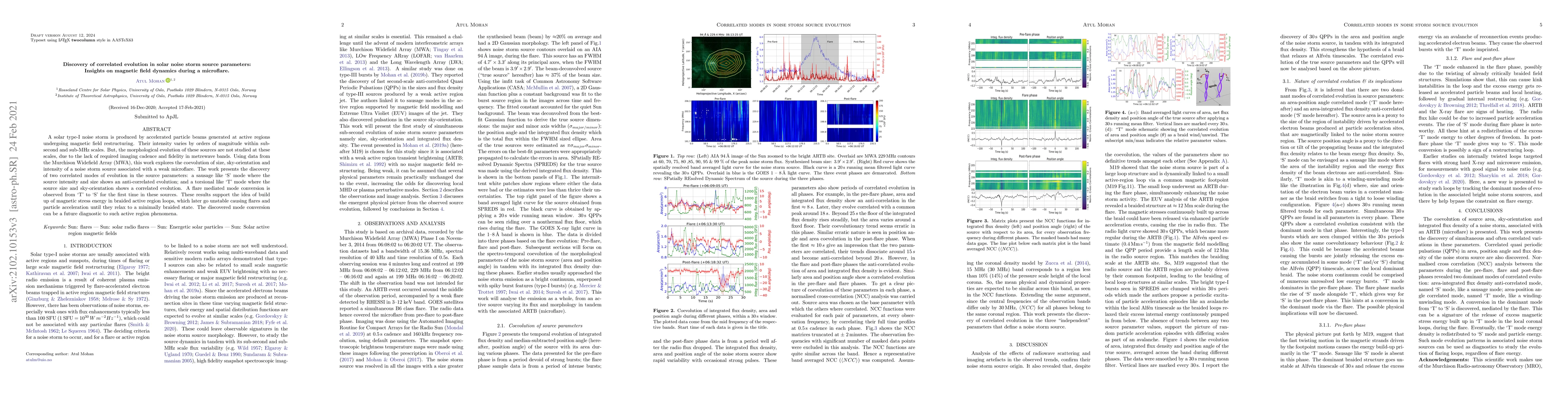A solar type-I noise storm is produced by accelerated particle beams generated at active regions undergoing magnetic field restructuring. Their intensity varies by orders of magnitude within sub-second and sub-MHz scales. But, the morphological evolution of these sources are not studied at these scales, due to the lack of required imaging cadence and fidelity in metrewave bands. Using data from the Murchison Widefield Array (MWA), this work explores the co-evolution of size, sky-orientation and intensity of a noise storm source associated with a weak microflare. The work presents the discovery of two correlated modes of evolution in the source parameters: a sausage like \s\ mode where the source intensity and size shows an anti-correlated evolution; and a torsional like \T\ mode where the source size and sky-orientation shows a correlated evolution. A flare mediated mode conversion is observed from \T\ to \s\ for the first time in these sources. These results support the idea of build up of magnetic stress energy in braided active region loops, which later go unstable causing flares and particle acceleration until they relax to a minimally braided state. The discovered mode conversion can be a future diagnostic to such active region phenomena.