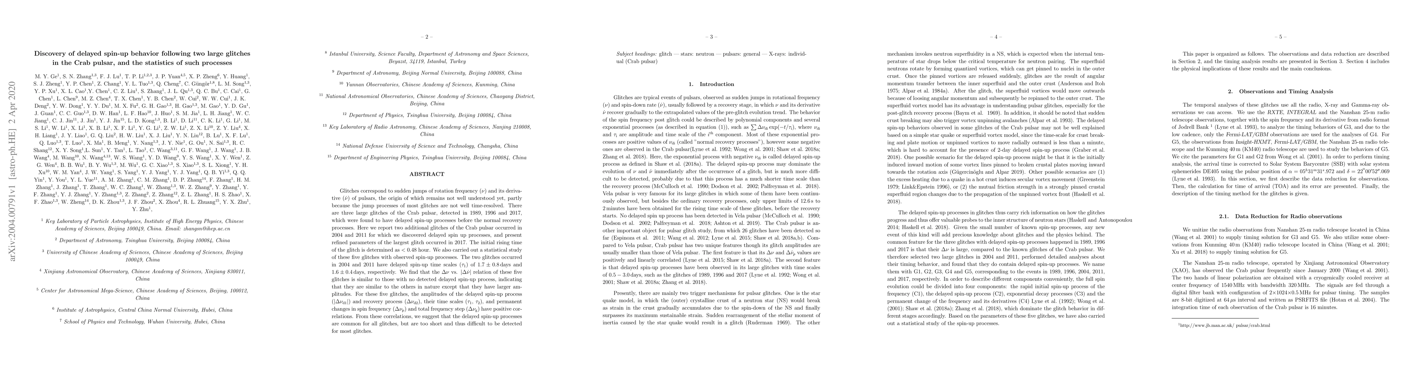 This paper reports the discovery of delayed spin-up behavior following two additional large glitches in the Crab pulsar, occurring in 2004 and 2011, and analyzes the statistical properties of such processes. The study suggests that delayed spin-up processes are common but often too brief to detect, and finds correlations between various parameters of the glitches.