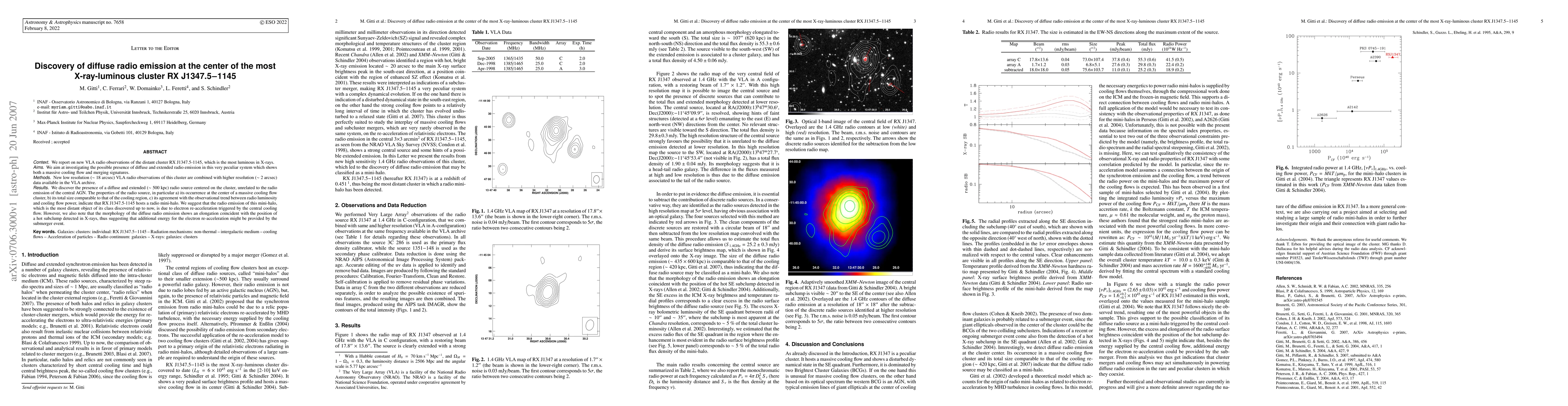 New VLA radio observations reveal a diffuse and extended radio source at the center of the X-ray-luminous cluster RX J1347.5-1145, indicating the presence of a radio mini-halo likely caused by electron re-acceleration from the central cooling flow, possibly enhanced by a subclump merger event.