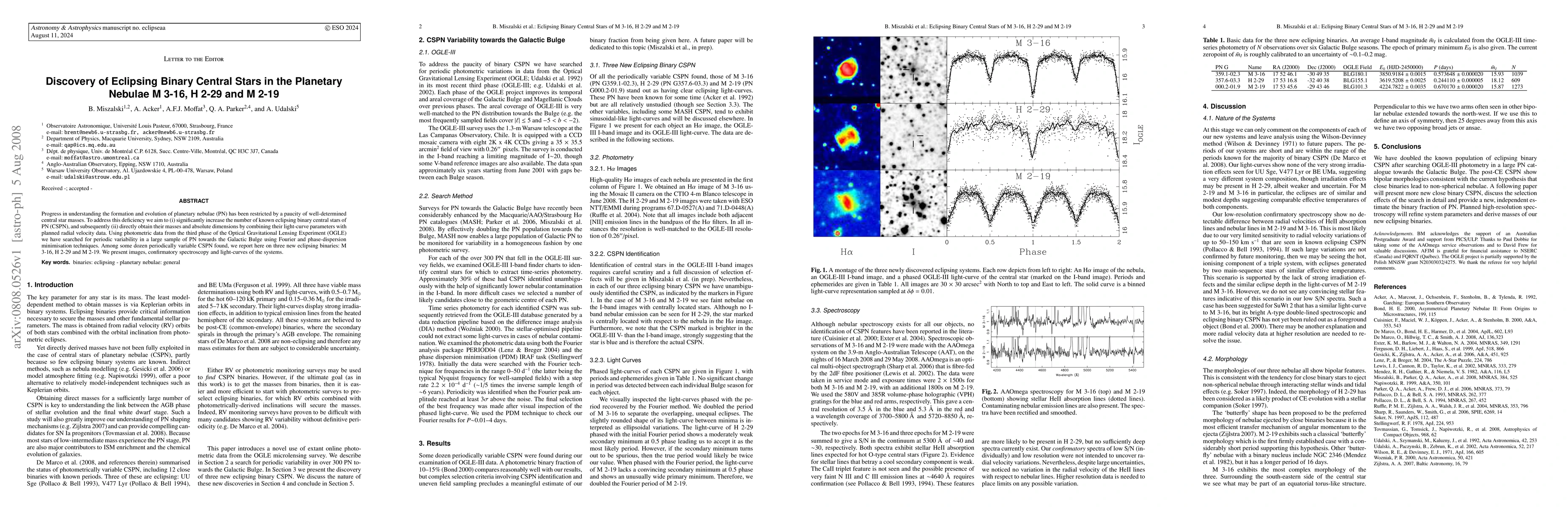 Progress in understanding the formation and evolution of planetary nebulae (PN) has been restricted by a paucity of well-determined central star masses. To address this deficiency we aim to (i) significantly increase the number of known eclipsing binary central stars of PN (CSPN), and subsequently (ii) directly obtain their masses and absolute dimensions by combining their light-curve parameters with planned radial velocity data. Using photometric data from the third phase of the Optical Gravitational Lensing Experiment (OGLE) we have searched for periodic variability in a large sample of PN towards the Galactic Bulge using Fourier and phase-dispersion minimisation techniques. Among some dozen periodically variable CSPN found, we report here on three new eclipsing binaries: M 3-16, H 2-29 and M 2-19. We present images, confirmatory spectroscopy and light-curves of the systems.