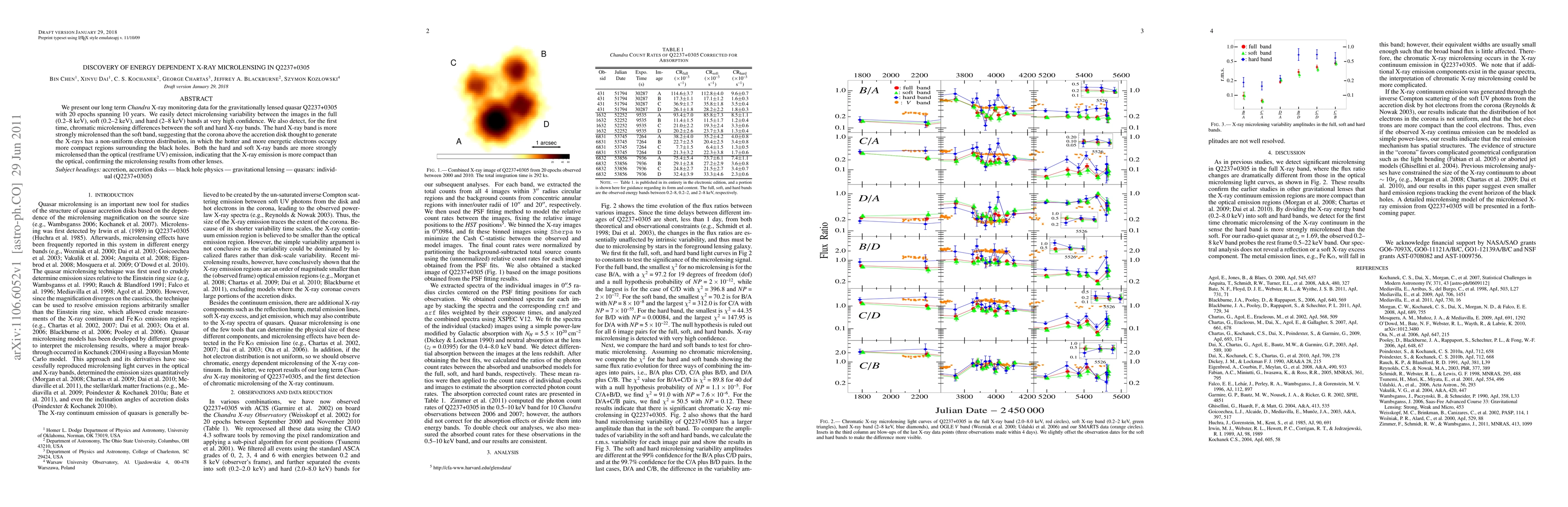 This paper reports the detection of energy-dependent X-ray microlensing in the quasar Q2237+0305 using long-term Chandra X-ray monitoring data, revealing stronger microlensing in the hard X-ray band compared to the soft band, suggesting a non-uniform electron distribution in the X-ray corona. The X-ray emission is found to be more compact than the optical emission.