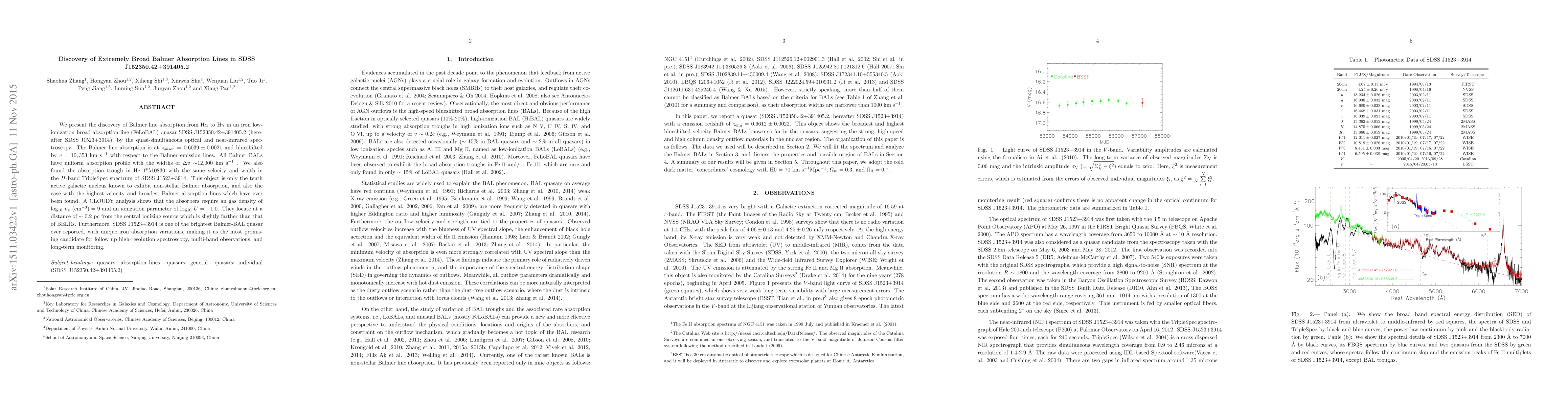 This paper reports the discovery of extremely broad Balmer absorption lines in the quasar SDSS J152350.42+391405.2, featuring the highest velocity and broadest absorption lines ever found, suggesting gas density and ionization parameters distinct from typical broad absorption line quasars.