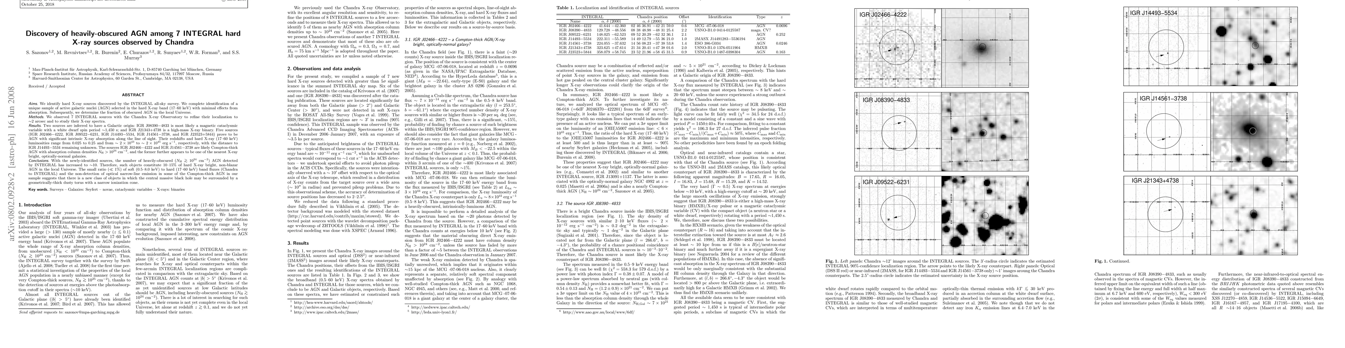 This study identifies 7 heavily obscured Active Galactic Nuclei (AGN) with strong X-ray absorption, including 2 magnetic cataclysmic variables and 5 Compton-thick AGN, using Chandra and INTEGRAL observations.