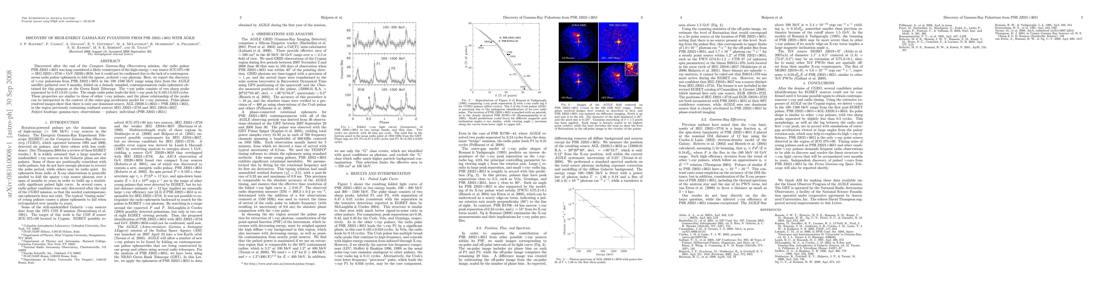 The AGILE satellite detected high-energy gamma-ray pulsations from the radio pulsar PSR J2021+3651, confirming its association with the high-energy gamma-ray source GeV J2020+3658. The gamma-ray pulse features two peaks separated by 0.47 cycles, with a phase relationship consistent with the outer-gap accelerator model.