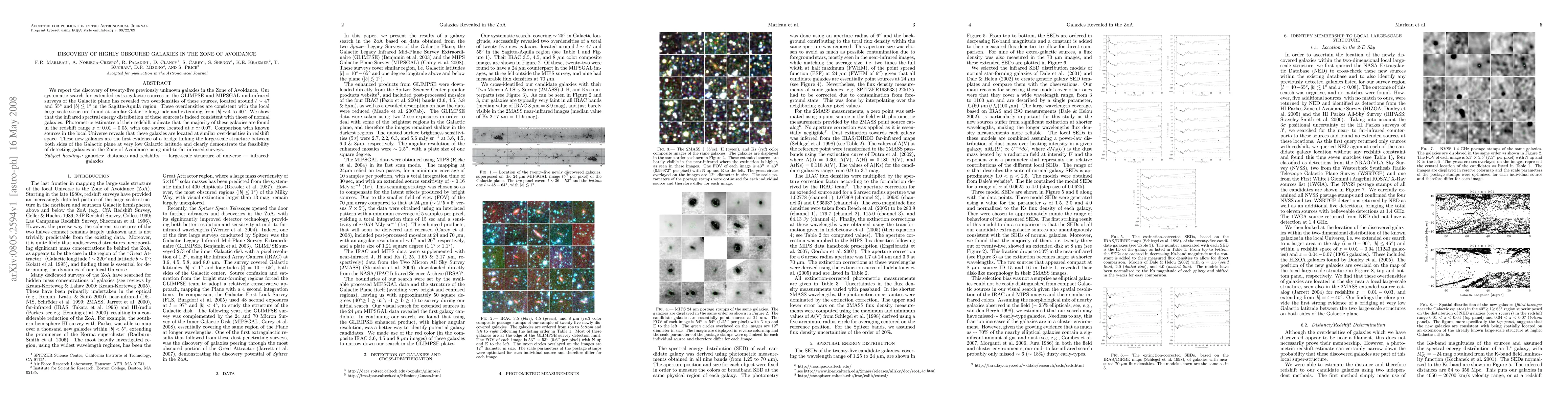 This paper reports the discovery of 25 previously unknown galaxies in the Zone of Avoidance using mid-infrared surveys, revealing two overdensities consistent with local large-scale structure and indicating the feasibility of detecting galaxies in this region. Most galaxies are found at redshifts z = 0.01 - 0.05, bridging large-scale structure across the Galactic plane.