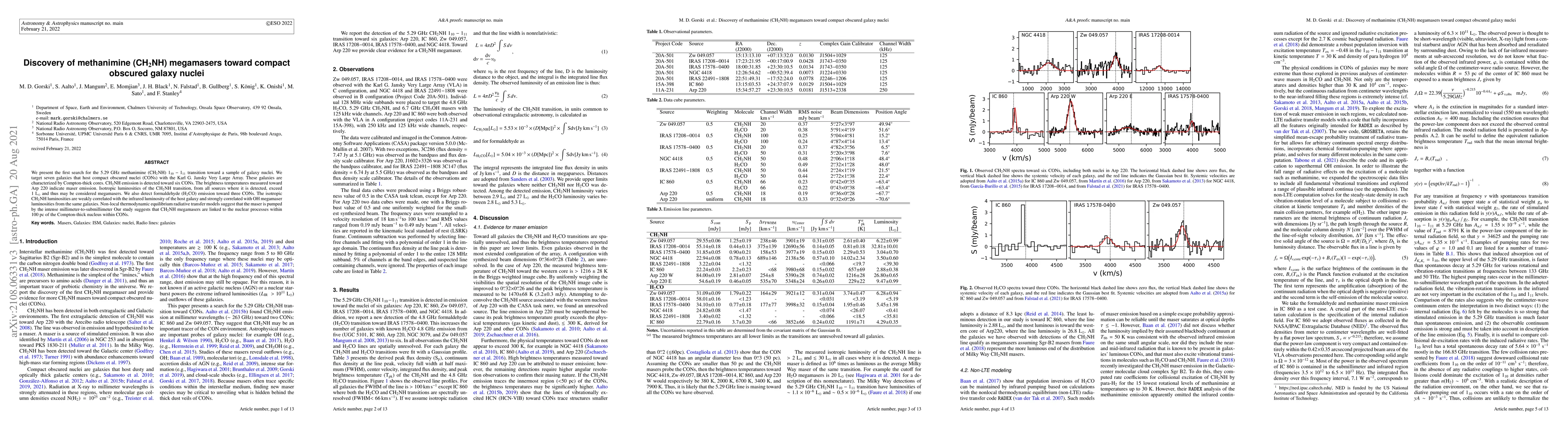 We present the first search for the 5.29 GHz methanimine($\rm{CH}_2\rm{NH}$) $1_{10}-1_{11}$ transition toward a sample of galaxy nuclei. We target seven galaxies that host Compact Obscured Nuclei (CONs) with the Karl G. Jansky Very Large Array. These galaxies are characterized by Compton-thick cores. $\rm{CH}_2\rm{NH}$ emission is detected toward six CONs. The brightness temperatures measured toward Arp220 indicate maser emission. Isotropic luminosities of the $\rm{CH}_2\rm{NH}$ transition, from all sources where it is detected, exceed 1 L$_{\odot}$ and thus may be considered megamasers. We also detect formaldehyde ($\rm{H}_2\rm{CO}$) emission toward three CONs. The isotropic $\rm{CH}_2\rm{NH}$ luminosities are weakly correlated with the infrared luminosity of the host galaxy and strongly correlated with OH megamaser luminosities from the same galaxies. Non-LTE radiative transfer models suggest that the maser is pumped by the intense mm/submm radiation field of the CONs. Our study suggests that $\rm{CH}_2\rm{NH}$ megamasers are linked to the nuclear processes within 100 pc of the Compton Thick nucleus within CONs.