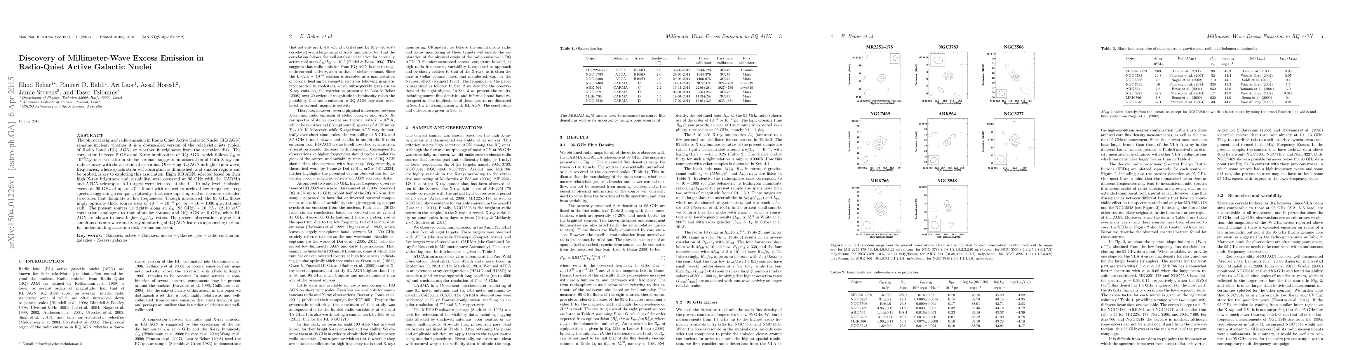 This paper reports the discovery of millimeter-wave excess emission in Radio Quiet Active Galactic Nuclei (RQ AGN), suggesting a compact, optically-thick core superimposed on extended structures. The findings support the association of radio and X-ray emissions with the accretion disk corona, indicating a promising method for understanding this phenomenon through simultaneous mm-wave and X-ray monitoring.