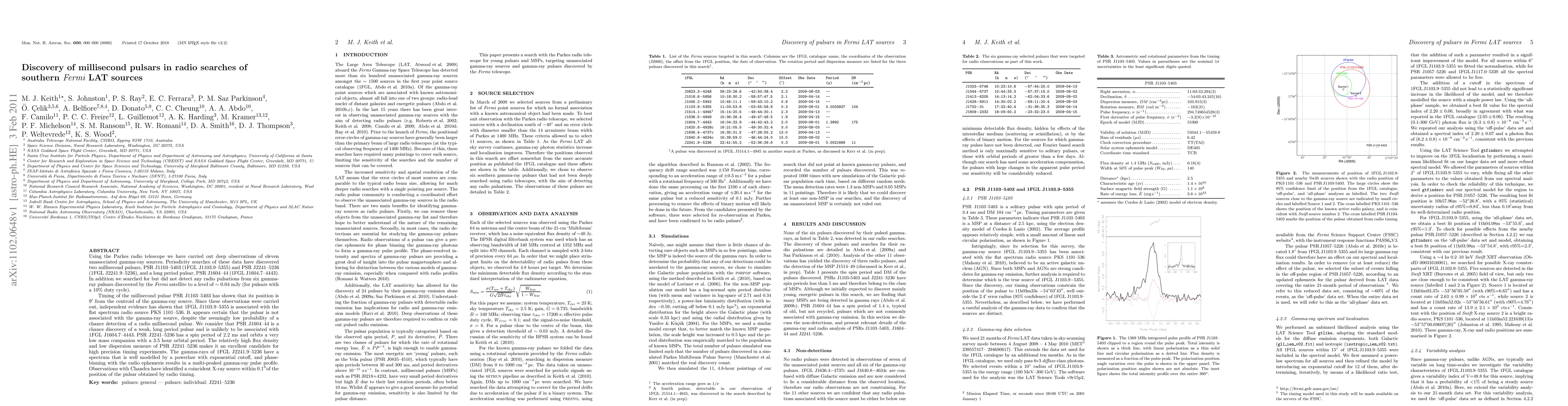 A radio search was conducted using the Parkes Observatory, with a focus on detecting millisecond pulsars.