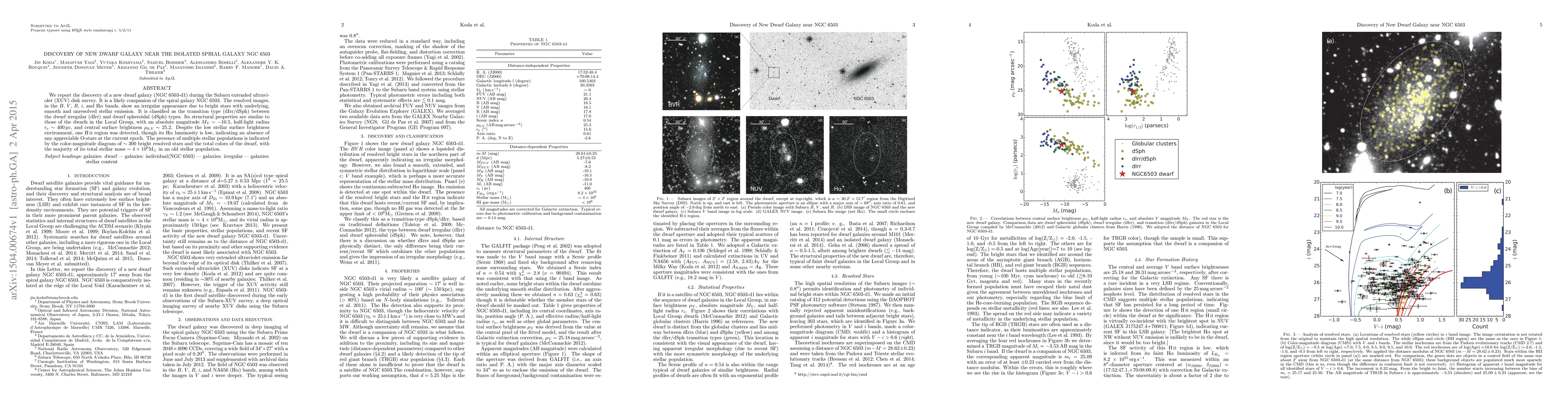 The paper reports the discovery of a new dwarf galaxy, NGC6503-d1, likely a companion to the spiral galaxy NGC 6503, characterized by an irregular appearance with underlying smooth stellar emission and classified as a transition type (dIrr/dSph). The galaxy exhibits structural properties similar to Local Group dwarfs, with an old stellar population and minimal current star formation.