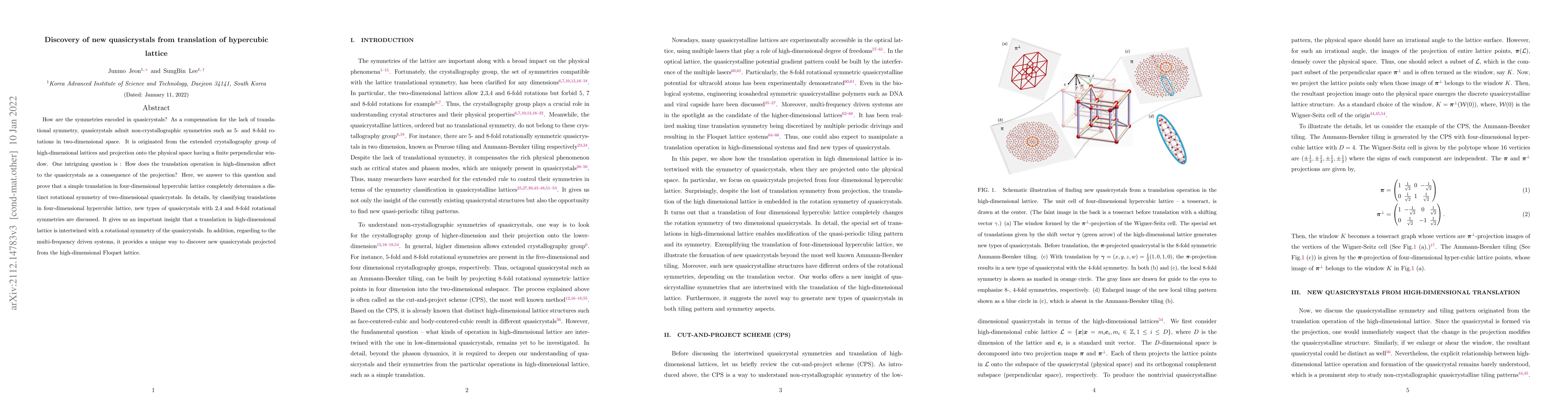 How are the symmetries encoded in quasicrystals? As a compensation for the lack of translational symmetry, quasicrystals admit non-crystallographic symmetries such as 5- and 8-fold rotations in two-dimensional space. It is originated from the extended crystallography group of high-dimensional lattices and projection onto the physical space having a finite perpendicular window. One intriguing question is : How does the translation operation in high-dimension affect to the quasicrystals as a consequence of the projection? Here, we answer to this question and prove that a simple translation in four-dimensional hypercubic lattice completely determines a distinct rotational symmetry of two-dimensional quasicrystals. In details, by classifying translations in four-dimensional hypercubic lattice, new types of quasicrystals with 2,4 and 8-fold rotational symmetries are discussed. It gives us an important insight that a translation in high-dimensional lattice is intertwined with a rotational symmetry of the quasicrystals. In addition, regarding to the multi-frequency driven systems, it provides a unique way to discover new quasicrystals projected from the high-dimensional Floquet lattice.