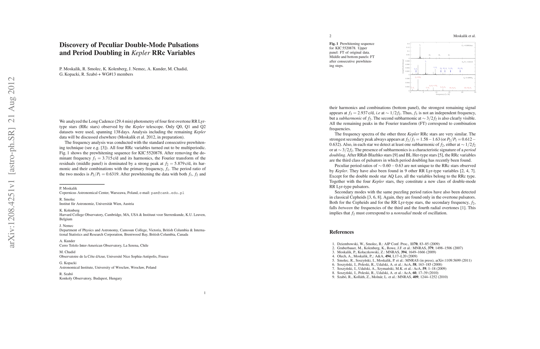 We analyzed the Long Cadence photometry of 4 first overtone RR Lyr-type stars (RRc stars) observed by the KEPLER telescope. All studied variables are multiperiodic. The strongest secondary peak appears for f_2/f_1 = 1.58-1.63, or P_2/P_1 = 0.61-0.63. In each star we detect at least one subharmonic of f_2, either at ~1/2 f_2 or at ~3/2 f_2. The presence of subharmonics is a characteristic signature of a period doubling.
