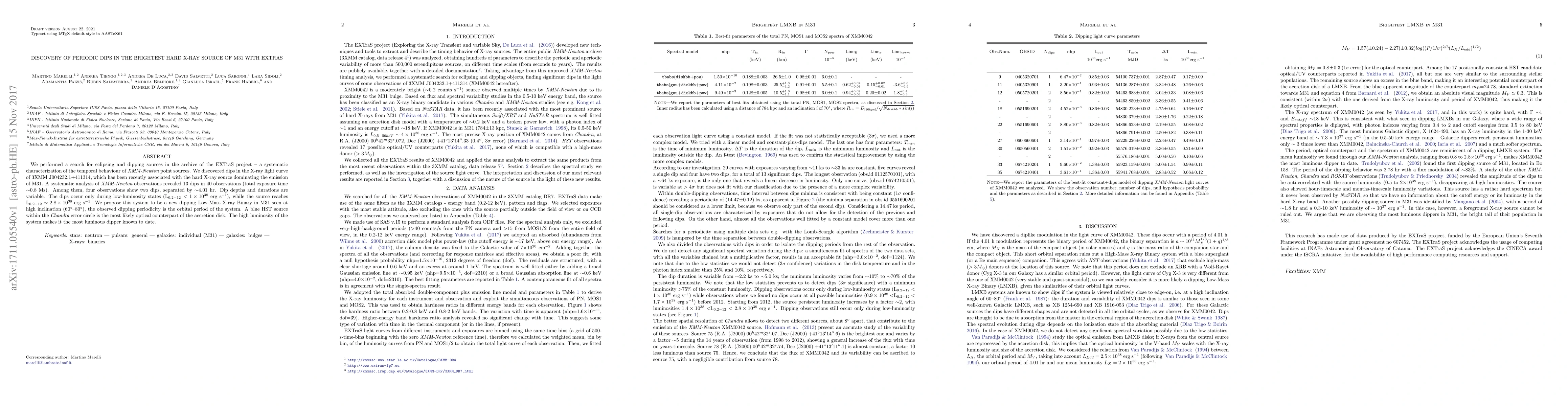 The research discovered periodic dips in the X-ray light curve of 3XMM J004232.1+411314, a prominent hard X-ray source in M31, suggesting it may be a new high-inclination Low-Mass X-ray Binary. The observed dips, occurring during low-luminosity states, indicate an orbital period and make it the most luminous dipper identified to date.