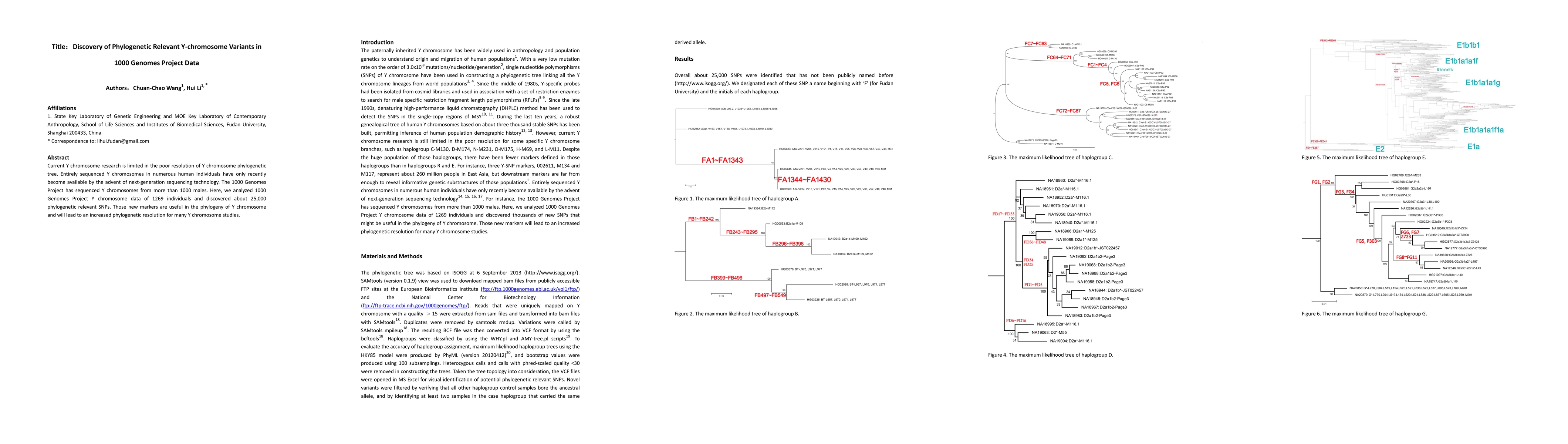 Current Y chromosome research is limited in the poor resolution of Y chromosome phylogenetic tree. Entirely sequenced Y chromosomes in numerous human individuals have only recently become available by the advent of next-generation sequencing technology. The 1000 Genomes Project has sequenced Y chromosomes from more than 1000 males. Here, we analyzed 1000 Genomes Project Y chromosome data of 1269 individuals and discovered about 25,000 phylogenetic relevant SNPs. Those new markers are useful in the phylogeny of Y chromosome and will lead to an increased phylogenetic resolution for many Y chromosome studies.