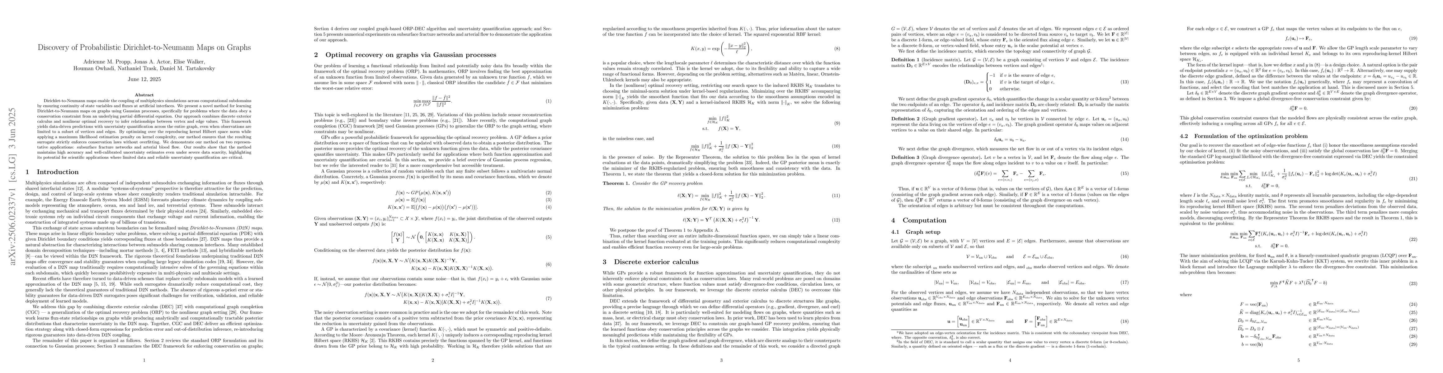The research introduces a novel method for learning Dirichlet-to-Neumann maps on graphs using Gaussian processes, combining discrete exterior calculus and nonlinear optimal recovery to infer relationships between vertex and edge values, ensuring conservation laws are enforced without overfitting.