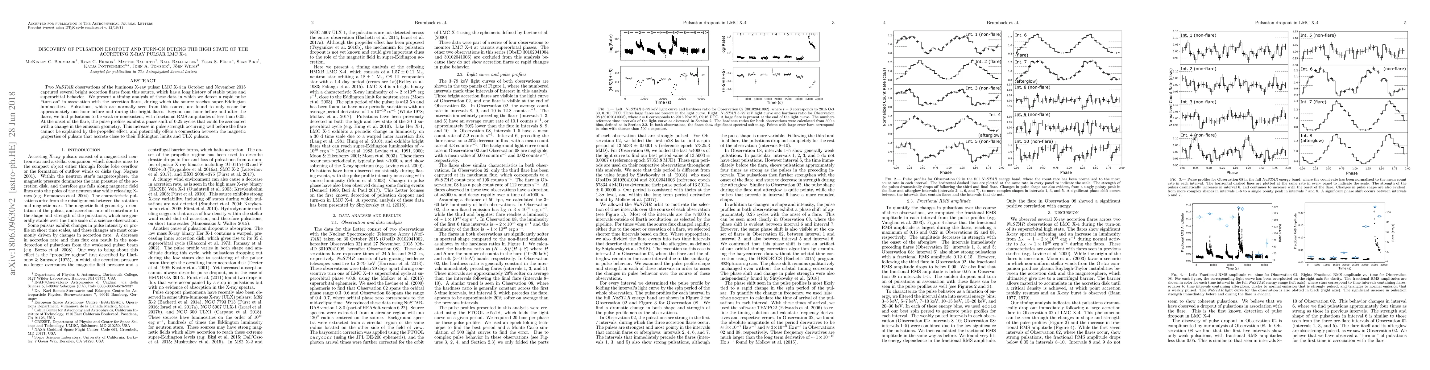 Two \textit{NuSTAR} observations of the luminous X-ray pulsar LMC X-4 in October and November 2015 captured several bright accretion flares from this source, which has a long history of stable pulse and superorbital behavior. We present a timing analysis of these data in which we detect a rapid pulse turn-on in association with the accretion flares, during which the source reaches super-Eddington luminosities. Pulsations, which are normally seen from this source, are found to only occur for approximately one hour before and during the bright flares. Beyond one hour before and after the flares, we find pulsations to be weak or nonexistent, with fractional RMS amplitudes of less than 0.05. At the onset of the flare, the pulse profiles exhibit a phase shift of 0.25 cycles that could be associated with a change in the emission geometry. This increase in pulse strength occurring well before the flare cannot be explained by the propeller effect, and potentially offers a connection between the magnetic properties of pulsars that accrete close to their Eddington limits and ULX pulsars.