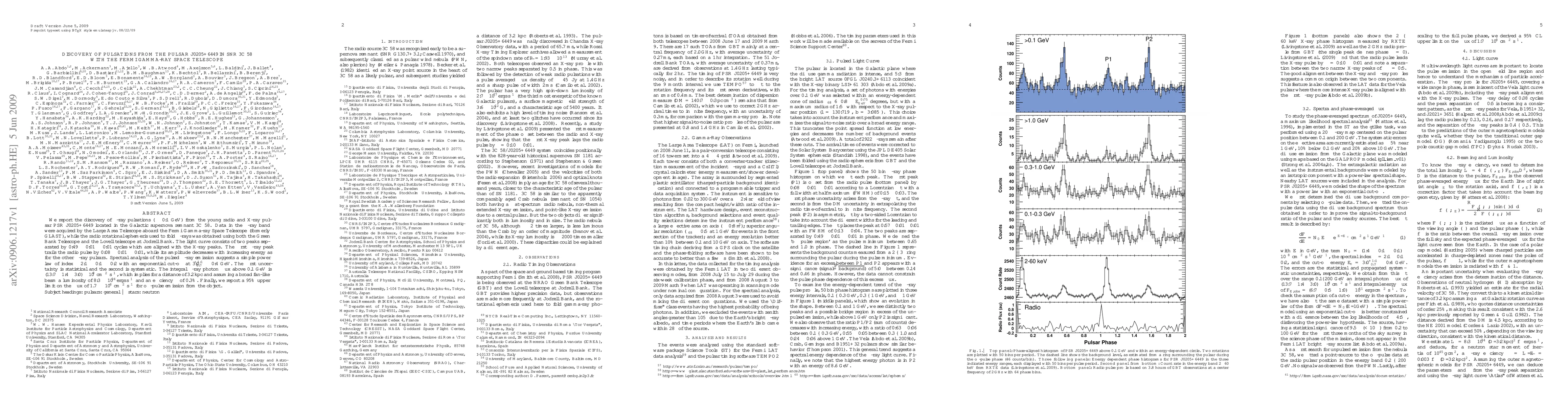 The Fermi Gamma-Ray Space Telescope discovered gamma-ray pulsations from the pulsar PSR J0205+6449 in SNR 3C 58, showing two peaks in the light curve aligned with X-ray peaks. The pulsed emission follows a power law with an exponential cut-off at 3.0 GeV, indicating a luminosity of 8.3 x 10^(34) ergs/s.