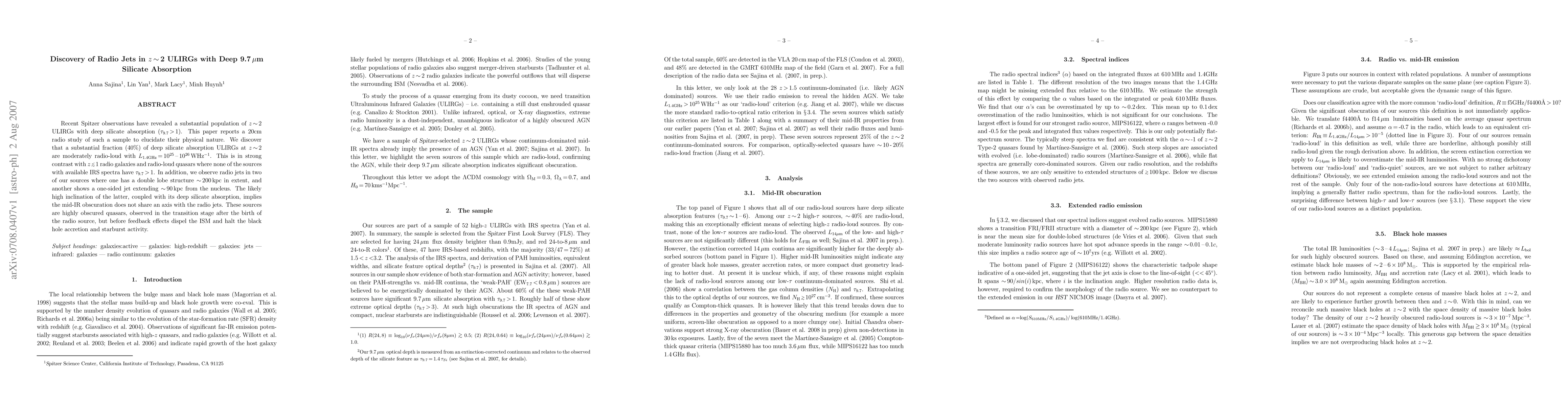 This paper reports the discovery of radio jets in a significant fraction (40%) of z~2 ultra-luminous infrared galaxies (ULIRGs) with deep silicate absorption, contrasting with lower redshift radio galaxies. The study reveals radio jets in two sources, indicating a transition stage in highly obscured quasars.