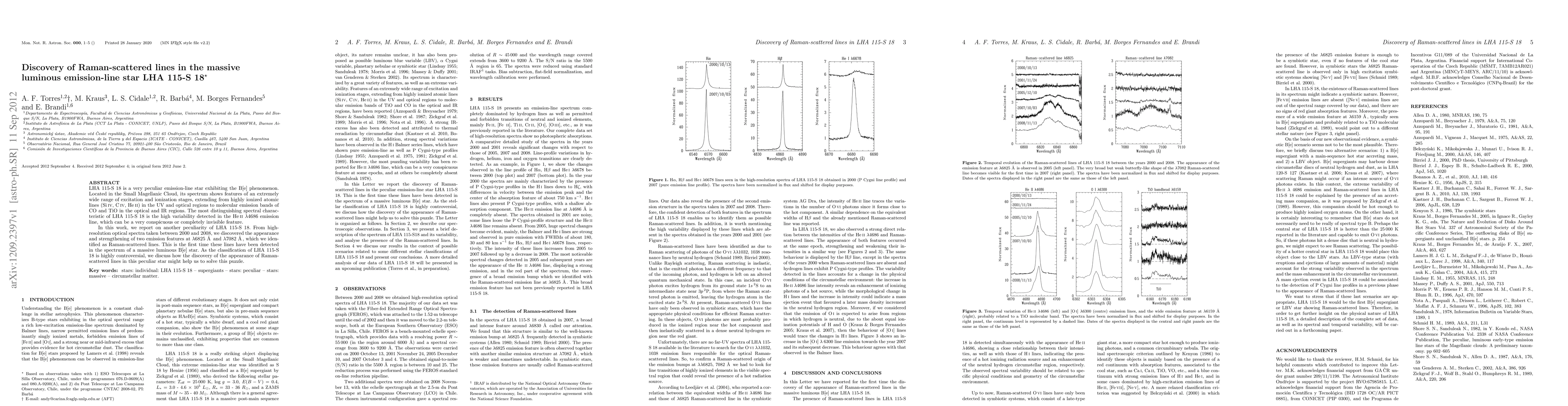 LHA 115-S 18 is a very peculiar emission-line star exhibiting the B[e] phenomenon. Located in the Small Magellanic Cloud, its spectrum shows features of an extremely wide range of excitation and ionization stages, extending from highly ionized atomic lines (Si IV, C IV, He II) in the UV and optical regions to molecular emission bands of CO and TiO in the optical and IR regions. The most distinguishing spectral characteristic of LHA 115-S 18 is the high variability detected in the He II {\lambda}4686 emission line, which can be a very conspicuous or completely invisible feature. In this work, we report on another peculiarity of LHA 115-S 18. From high-resolution optical spectra taken between 2000 and 2008, we discovered the appearance and strengthening of two emission features at {\lambda}6825 \AA, and {\lambda}7082 \AA,, which we identified as Raman-scattered lines. This is the first time these lines have been detected in the spectrum of a massive luminous B[e] star. As the classification of LHA 115-S 18 is highly controversial, we discuss how the discovery of the appearance of Raman-scattered lines in this peculiar star might help us to solve this puzzle.