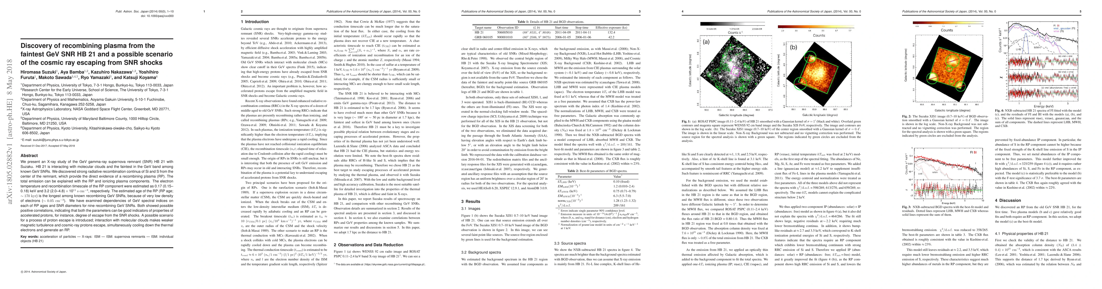 Scientists studied a faint gamma-ray supernova remnant (SNR) HB 21 to find evidence of recombining plasma, which reveals the conditions under which cosmic rays escape from SNR shocks.