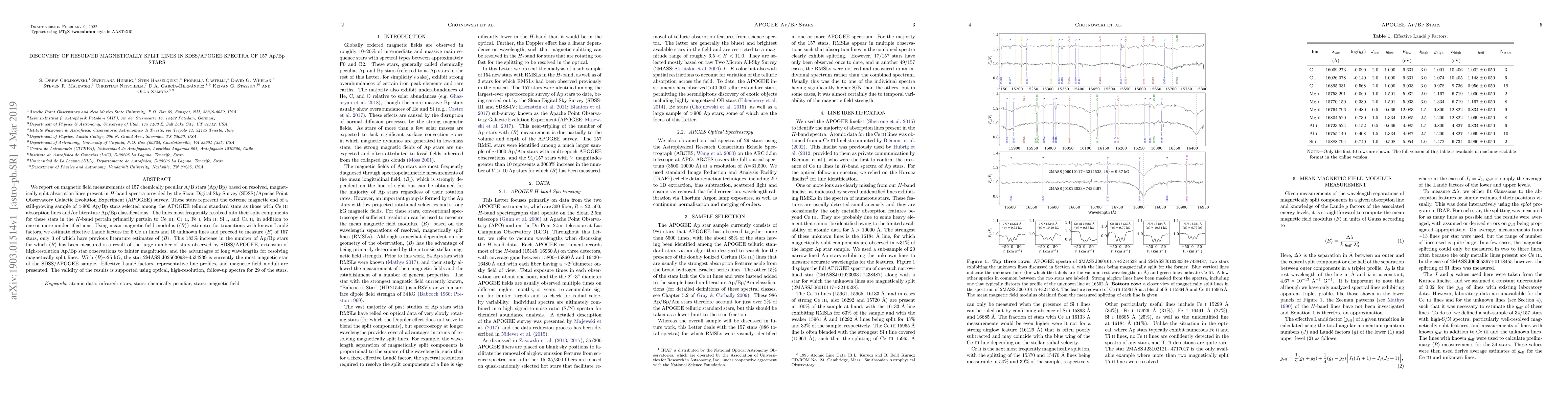 This paper reports magnetic field measurements for 157 Ap/Bp stars using resolved, magnetically split absorption lines in SDSS/APOGEE spectra, significantly increasing the number of stars with known magnetic field moduli by 183%. The study identifies key ions and presents effective Landé factors for several lines.