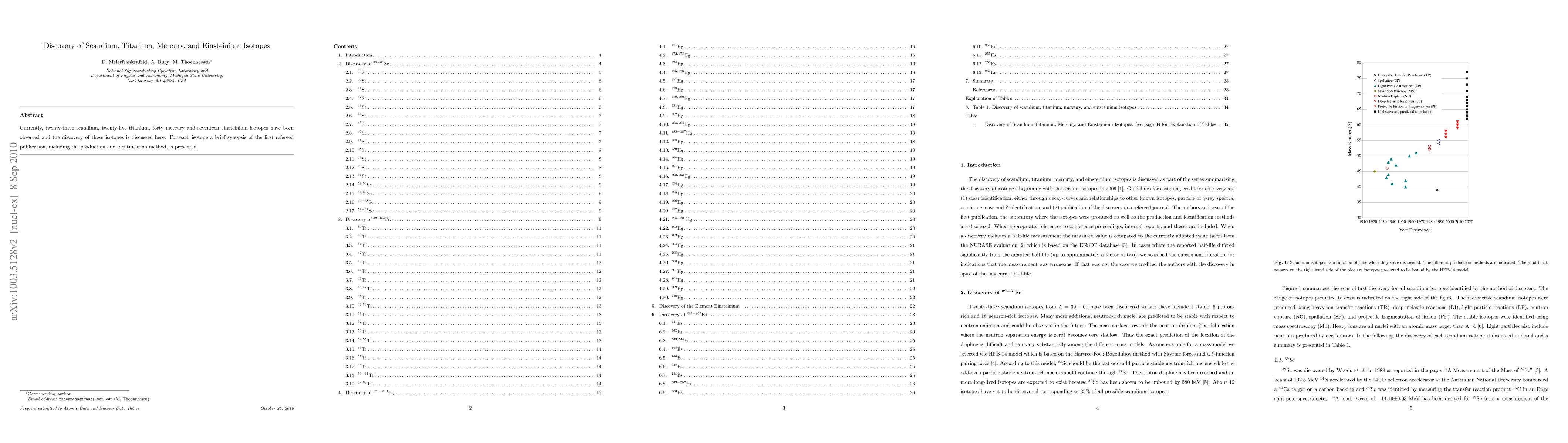 Currently, twenty-three scandium, twenty-five titanium, forty mercury and seventeen einsteinium isotopes have been observed and the discovery of these isotopes is discussed here. For each isotope a brief synopsis of the first refereed publication, including the production and identification method, is presented.