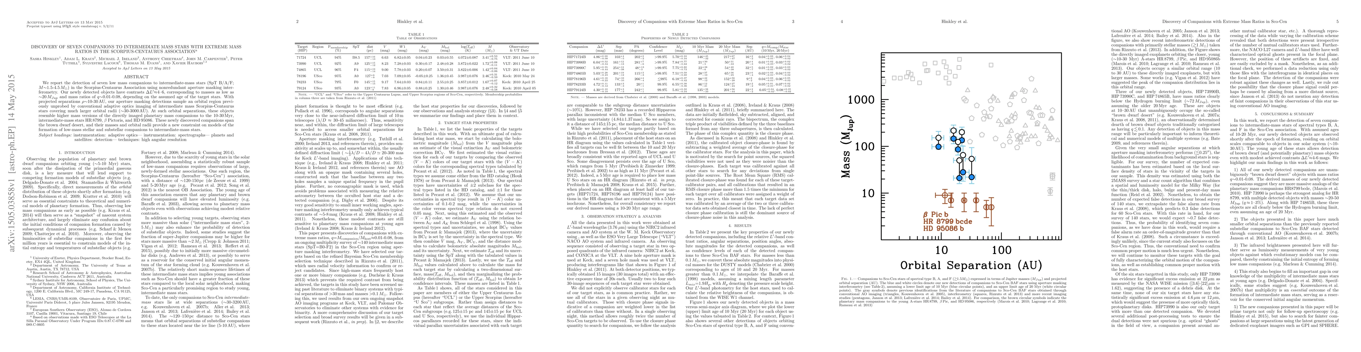 This paper reports the discovery of seven low-mass companions to intermediate-mass stars in the Scorpius-Centaurus Association using aperture masking interferometry, revealing companions with extreme mass ratios and small orbital separations previously unexplored by conventional adaptive optics imaging. These findings provide new constraints on models of the formation of low-mass companions to intermediate-mass stars.