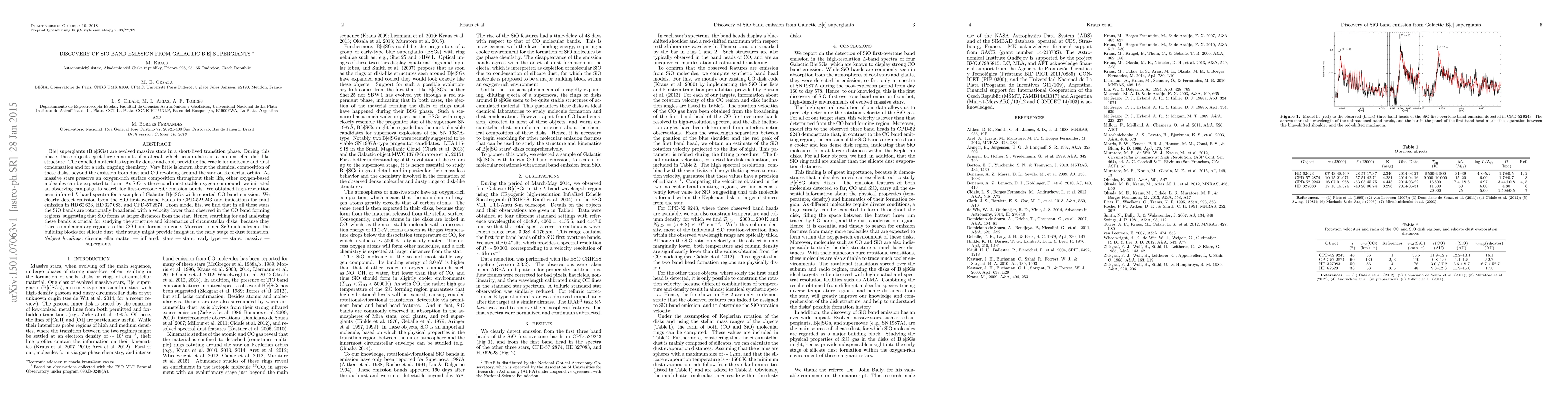 This research discovers SiO first-overtone band emission in several Galactic B[e] supergiants, indicating the presence of SiO in their circumstellar disks. The detected SiO bands suggest formation at larger distances compared to CO, offering insights into the structure and kinematics of these disks and the early stages of dust formation.