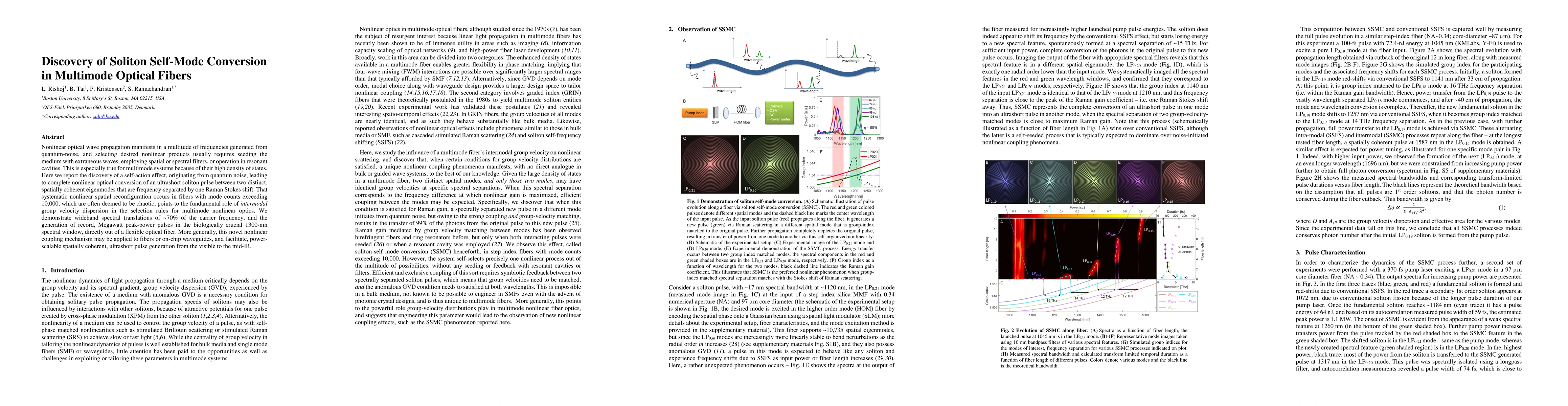 This research reveals a soliton self-mode conversion in multimode optical fibers driven by quantum noise, leading to significant nonlinear optical effects. It demonstrates the generation of high-power pulses and wideband spectral translations, indicating a potential for scalable, coherent ultrashort pulse generation across various optical spectra.