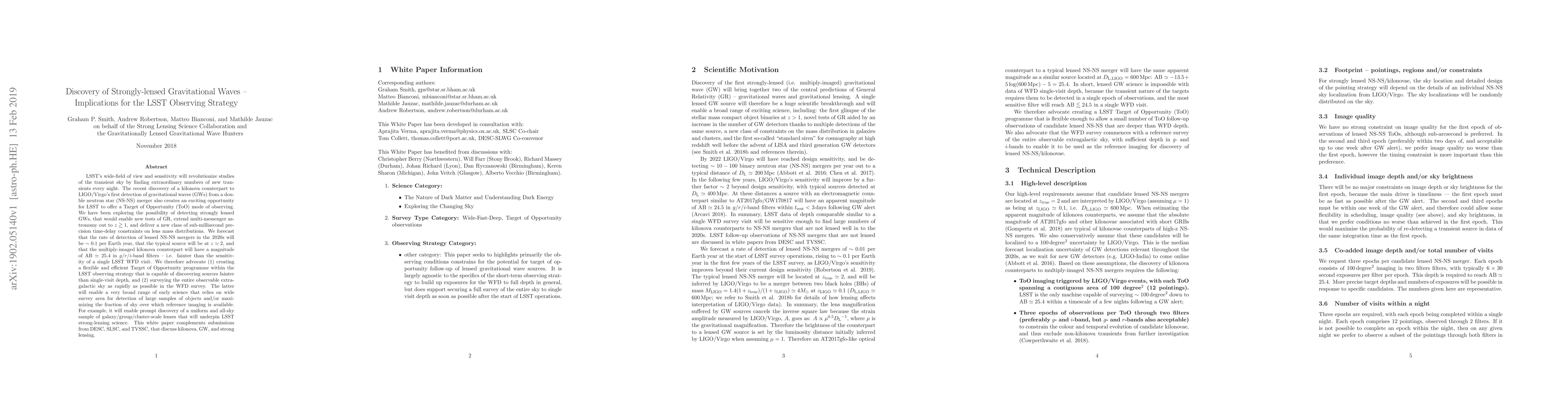 LSST's wide-field of view and sensitivity will revolutionize studies of the transient sky by finding extraordinary numbers of new transients every night. The recent discovery of a kilonova counterpart to LIGO/Virgo's first detection of gravitational waves (GWs) from a double neutron star (NS-NS) merger also creates an exciting opportunity for LSST to offer a Target of Opportunity (ToO) mode of observing. We have been exploring the possibility of detecting strongly lensed GWs, that would enable new tests of GR, extend multi-messenger astronomy out to $z\gtrsim1$, and deliver a new class of sub-millisecond precision time-delay constraints on lens mass distributions. We forecast that the rate of detection of lensed NS-NS mergers in the 2020s will be $\sim0.1$ per Earth year, that the typical source will be at $z\simeq2$, and that the multiply-imaged kilonova counterpart will have a magnitude of ${\rm AB}\simeq25.4$ in $g/r/i$-band filters - i.e. fainter than the sensitivity of a single LSST WFD visit. We therefore advocate (1) creating a flexible and efficient Target of Opportunity programme within the LSST observing strategy that is capable of discovering sources fainter than single-visit depth, and (2) surveying the entire observable extragalactic sky as rapidly as possible in the WFD survey. The latter will enable a very broad range of early science that relies on wide survey area for detection of large samples of objects and/or maximizing the fraction of sky over which reference imaging is available. For example, it will enable prompt discovery of a uniform and all-sky sample of galaxy/group/cluster-scale lenses that will underpin LSST strong-lensing science. This white paper complements submissions from DESC, SLSC, and TVSSC, that discuss kilonova, GW, and strong lensing.