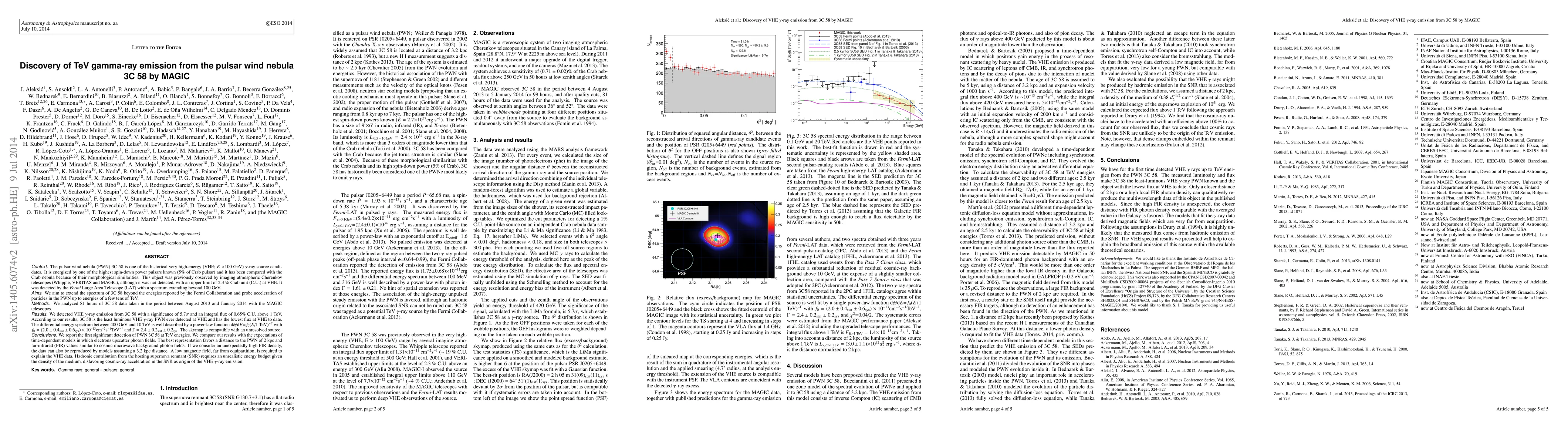 The MAGIC telescopes detected VHE gamma-ray emission from the pulsar wind nebula 3C 58 with a significance of 5.7 sigma, marking the first significant detection at TeV energies. The data suggest a low-flux, low-luminosity PWN, with a spectrum best described by a power-law function.