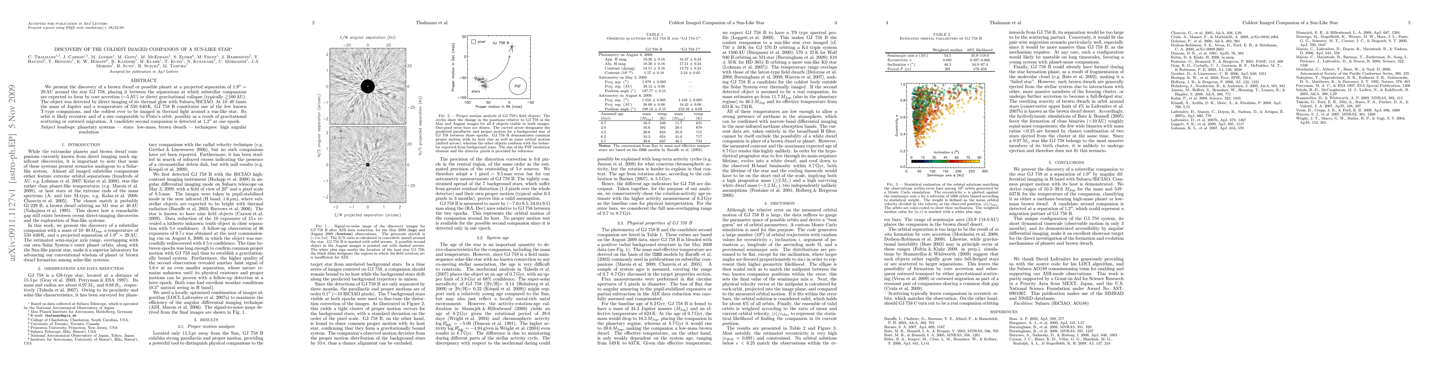 Scientists have discovered a brown dwarf companion to a Sun-like star, GJ 758, at 29 AU distance, making it the coldest imaged companion of its kind around a Sun-like star.