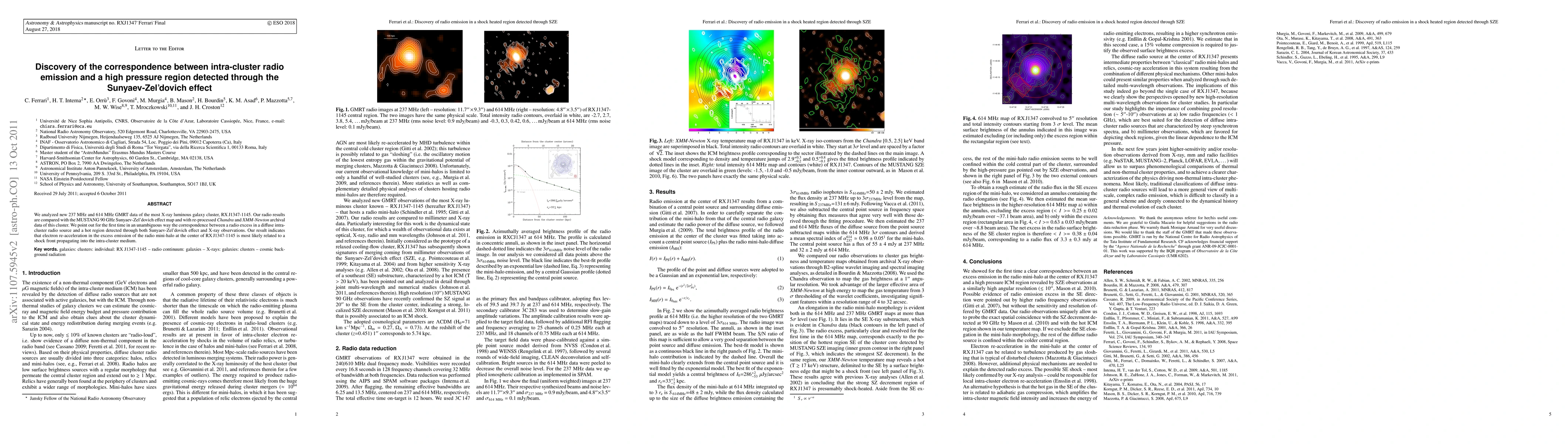 This study reveals a clear correspondence between intra-cluster radio emission and a high-pressure region detected via the Sunyaev-Zel'dovich effect in the galaxy cluster RX J1347-1145. The findings suggest that electron re-acceleration in the radio mini-halo is linked to a shock front in the intra-cluster medium.