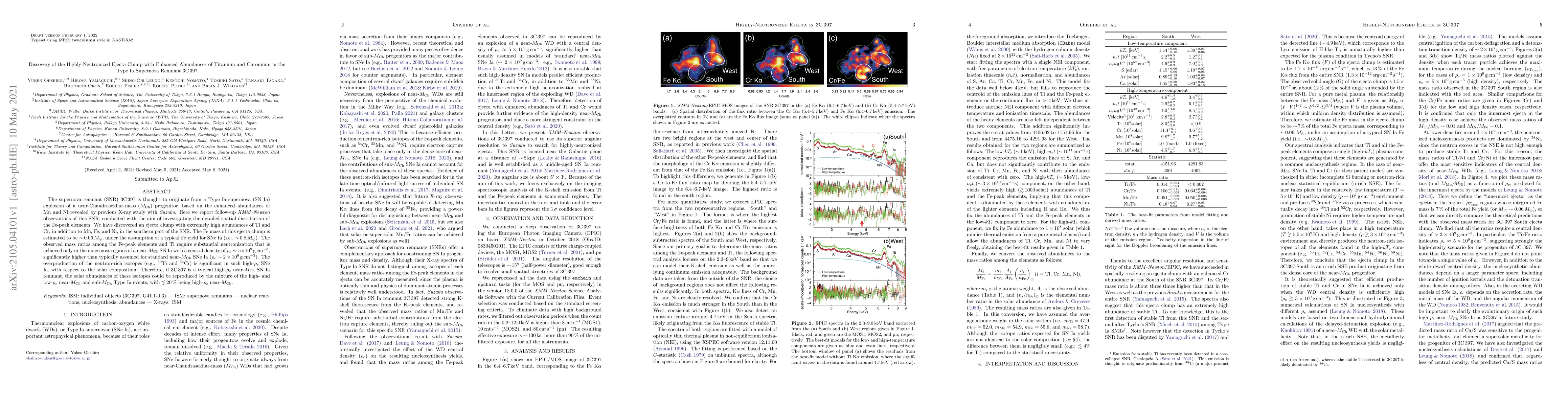 This paper reports the discovery of a neutronized ejecta clump in the Type Ia supernova remnant 3C 397, showing enhanced abundances of Ti, Cr, Mn, Fe, and Ni, indicating substantial neutronization likely from a near-Chandrasekhar-mass progenitor. The findings suggest a higher central density in the progenitor than typical models predict.