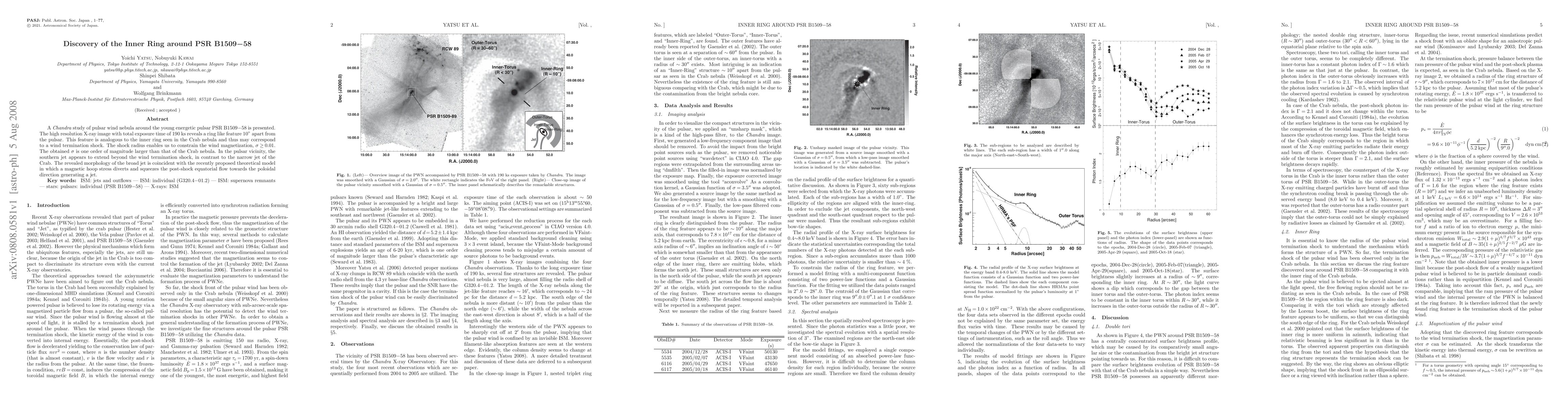 A Chandra study of pulsar wind nebula around the young energetic pulsar PSR B1509-58 is presented. The high resolution X-ray image with total exposure time of 190 ks reveals a ring like feature 10'' apart from the pulsar. This feature is analogous to the inner ring seen in the Crab nebula and thus may correspond to a wind termination shock. The shock radius enables us to constrain the wind magnetization, sigma>= 0.01. The obtained sigma is one order of magnitude larger than that of the Crab nebula. In the pulsar vicinity, the southern jet appears to extend beyond the wind termination shock, in contrast to the narrow jet of the Crab. The revealed morphology of the broad jet is coincident with the recently proposed theoretical model in which a magnetic hoop stress diverts and squeezes the post-shock equatorial flow towards the poloidal direction generating a jet.