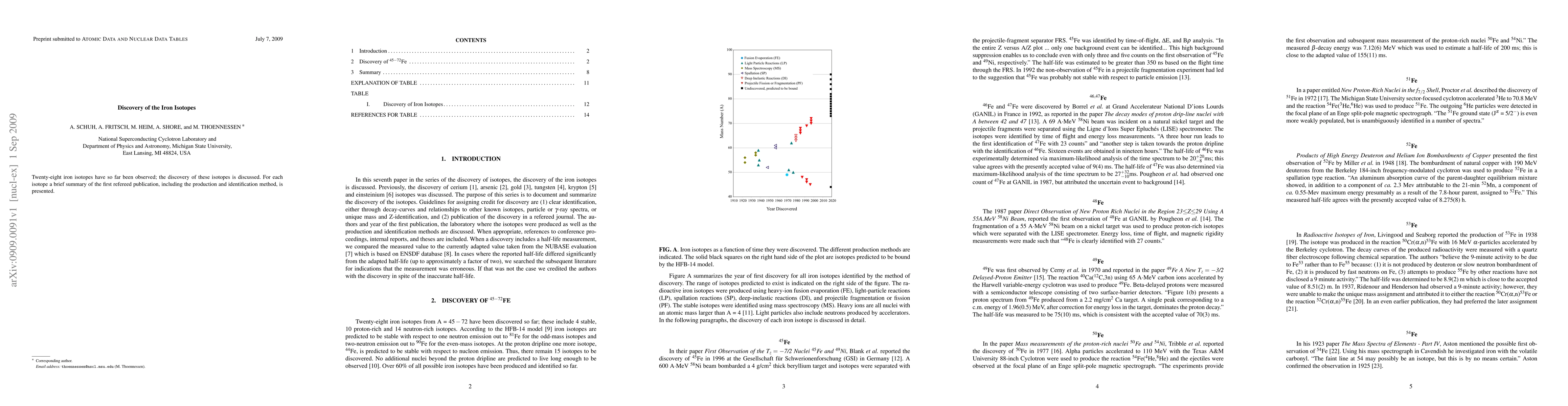 Twenty-eight iron isotopes have so far been observed; the discovery of these isotopes is discussed. For each isotope a brief summary of the first refereed publication, including the production and identification method, is presented.