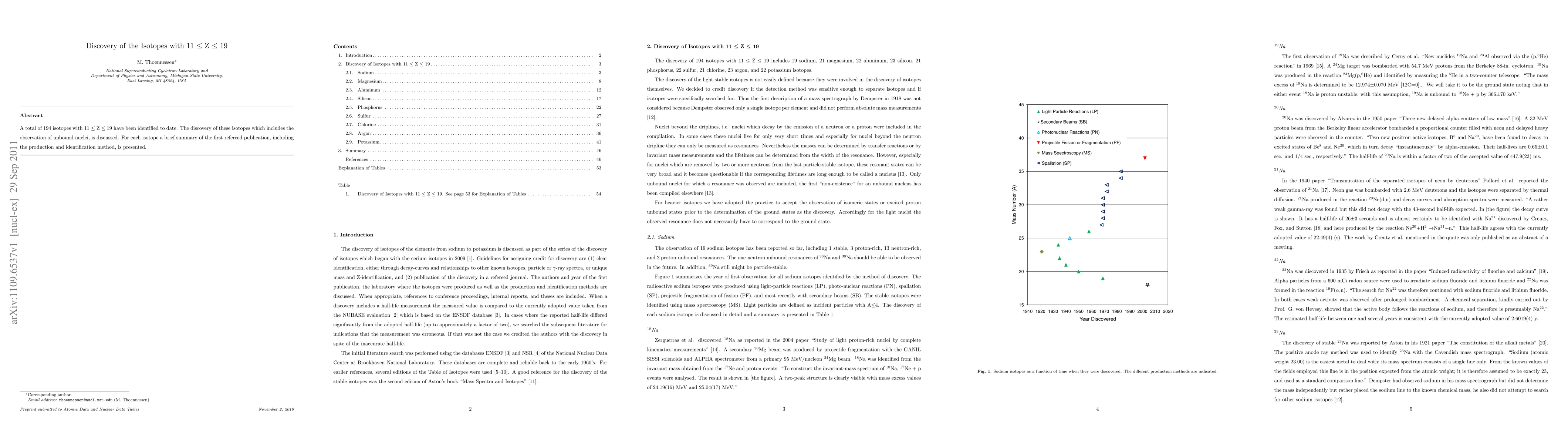 This paper catalogs 194 isotopes with atomic numbers 11 to 19, detailing their discovery, including unbound nuclei, and summarizes the production and identification methods from the first refereed publications for each isotope.