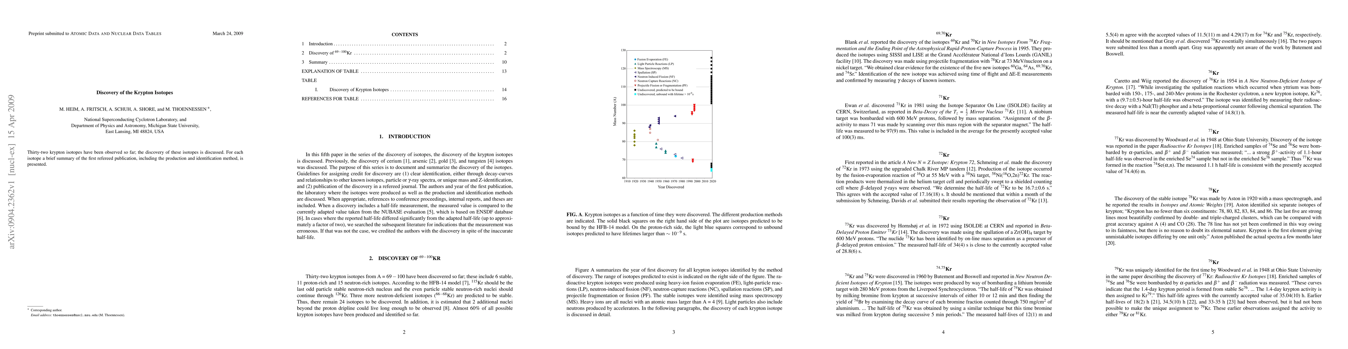 Thirty-two krypton isotopes have been observed so far; the discovery of these isotopes is discussed. For each isotope a brief summary of the first refereed publication, including the production and identification method, is presented.