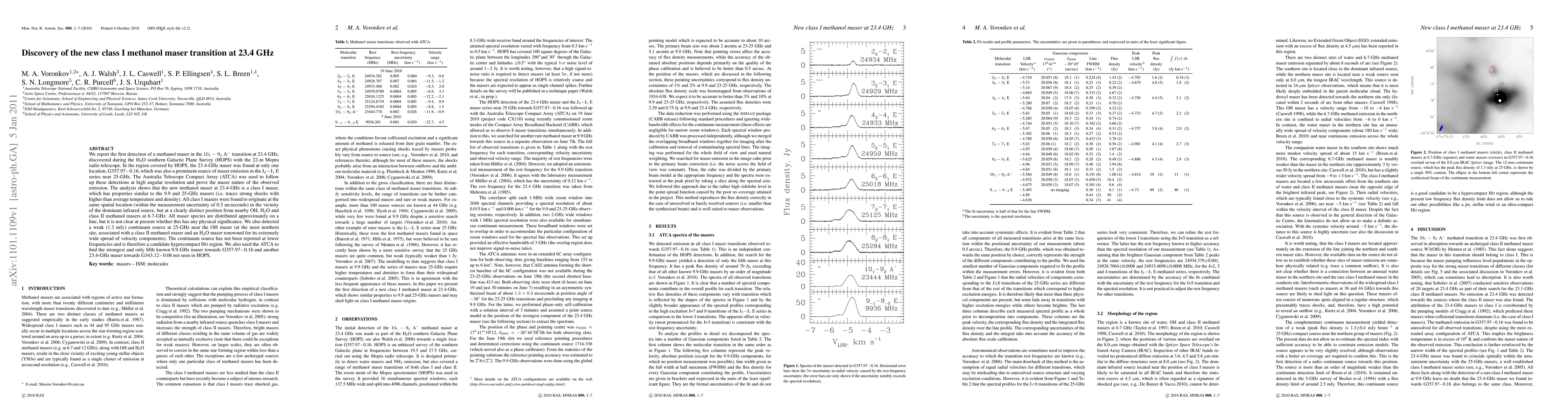A new class I methanol maser transition at 23.4 GHz has been discovered in a specific region of the galaxy, with properties similar to other known class I masers. The detection was made using the H2O southern Galactic Plane Survey with the Mopra radio telescope and confirmed with high angular resolution observations from the Australia Telescope Compact Array.