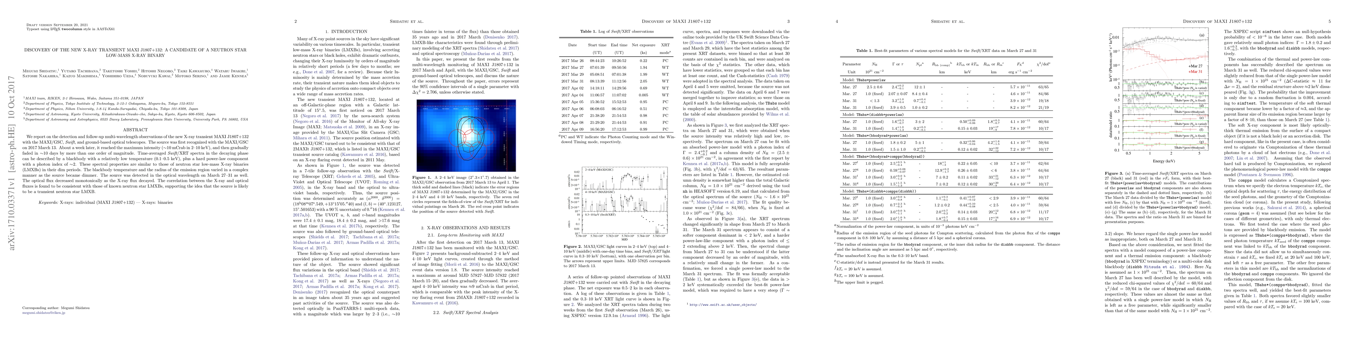 The new X-ray transient MAXI J1807+132 was detected in March 2017 and exhibited spectral characteristics similar to neutron star low-mass X-ray binaries (LMXBs), suggesting it is a candidate for such a system. The source showed a gradual decline in X-ray intensity and correlated optical flux, supporting its classification as a transient neutron star LMXB.