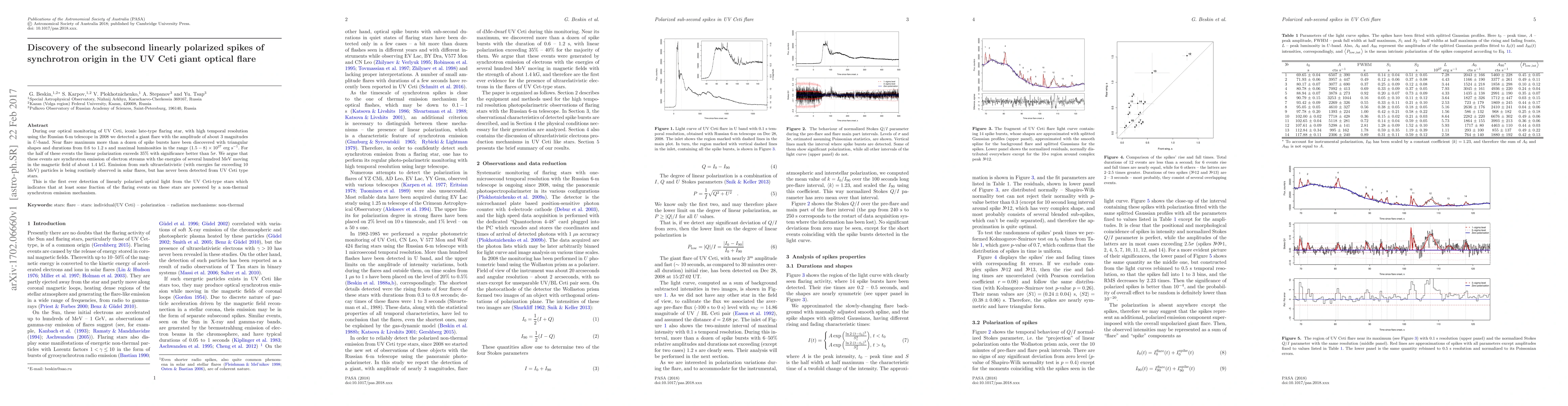 This study reports the first detection of subsecond linearly polarized spikes in the optical flare of UV Ceti, suggesting synchrotron emission from relativistic electron streams. These findings indicate that non-thermal mechanisms may power some flaring events on UV Ceti-type stars.