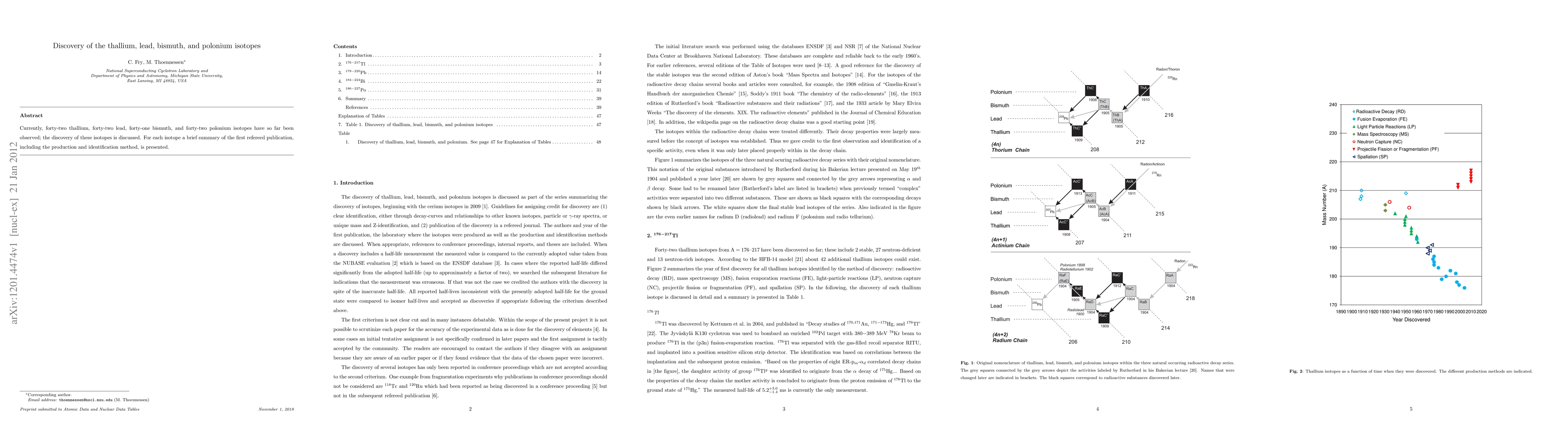 Currently, forty-two thallium, forty-two lead, forty-one bismuth, and forty-two polonium isotopes have so far been observed; the discovery of these isotopes is discussed. For each isotope a brief summary of the first refereed publication, including the production and identification method, is presented.